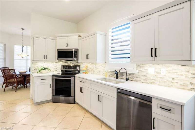 Don't miss your opportunity to see this impeccably maintained home situated on a quiet cul-de-sac in the highly desirable North Naples community of Carlton Lakes. This floor plan features 3 bedrooms, 2 full baths, formal dining space, large living room & open den space located off of the kitchen. This home will check all the boxes. The moment you walk through the front entry you'll notice volume ceilings, decorative archways, plantation shutters and your serene preserve view. Enjoy cooking in your completely renovated kitchen that features shaker cabinets, quartz countertops, large composite sink & stainless steel appliances. You'll enjoy dining alfresco on your oversized screened back lanai listening to the sounds of the birds from the preserve. The spacious master suite has an in-suite bath that has just recently been updated and includes dual sinks with new vanities, quartz countertops, brushed nickel faucets, newly tiled shower with frameless shower door and large soaking tub. Other notable updates include a new roof in 2022, accordion shutters for hurricane protection, recently painted exterior, newer AC and epoxied garage floor. Carlton Lakes amenities include a club house with 60 foot lap pool & hot tub, a fitness room, bocce & tennis courts, tot lot & fishing pier. You are close to shopping & dining, have great walkability to 2 grocery stores and you are only 7 miles to Naples gorgeous white sand beaches. This home comes with a 1 year home warranty for the new buyer at closing.