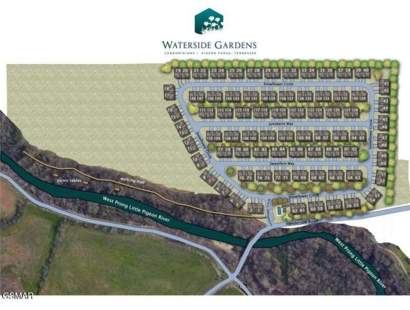 Welcome to Waterside Gardens Condominiums! It is time to begin customizing your brand-new, zero-maintenance home! Phase 4 construction is starting for these beautiful two- and three-bedroom condos located in the heart of Pigeon Forge on 47 serene acres along the Little Pigeon River, and minutes from the wonders Dollywood, Gatlinburg and the Smoky Mountains. This perimeter unit will maximize privacy, allowing you to enjoy zero-maintenance living from your secluded back patio or covered porch, or your covered front porch, while the HOA takes care of exteriors, lawns and landscaping. Featuring your choice of granite kitchen tops, soft-close cabinets, LVP flooring, living room and bedroom ceiling fans, stainless appliances, cathedral ceilings, elevated toilets and wide 36'' doors, this roomy two-bedroom condo sits in a peaceful community that allows no overnight rentals. Waterside Gardens will have a community pool by next summer, and 20 acres of green space with a walking trail and picnic tables for residents and their pets to enjoy. Waterside Gardens is being developed and constructed by the same team that built Riverbend Gardens and Creekside Gardens in Sevierville.