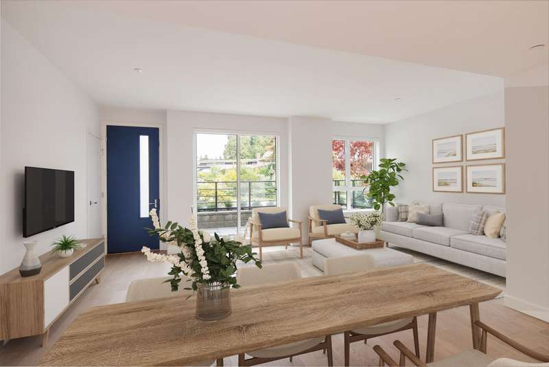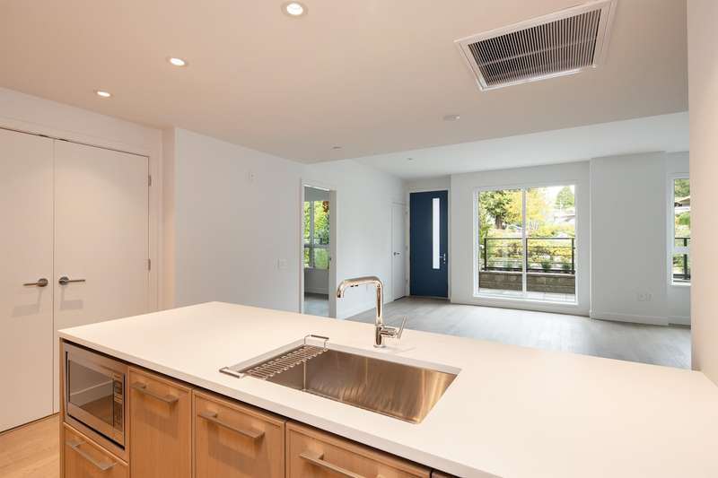 Discover luxury living in this stunning 2-bedroom, 2-bathroom one-level townhome. Designed with meticulous attention to detail, this residence features a modern kitchen with elegant Italian cabinetry, Bosch appliances, and a 5-burner gas cooktop. The spacious primary suite boasts a custom walk-in closet and a hotel-like ensuite with a double vanity, marble tiles, and heated floors. Enjoy wide-plank engineered hardwood flooring throughout, adding warmth and sophistication. Benefit from year-round comfort with air conditioning and a private 199 SqFt patio, complete with a gas hookup and breathtaking mountain views. Amenities include a fitness centre and an indoor/outdoor lounge with a BBQ & fire pit. Embrace the vibrant charm and convenience of Edgemont Village living!