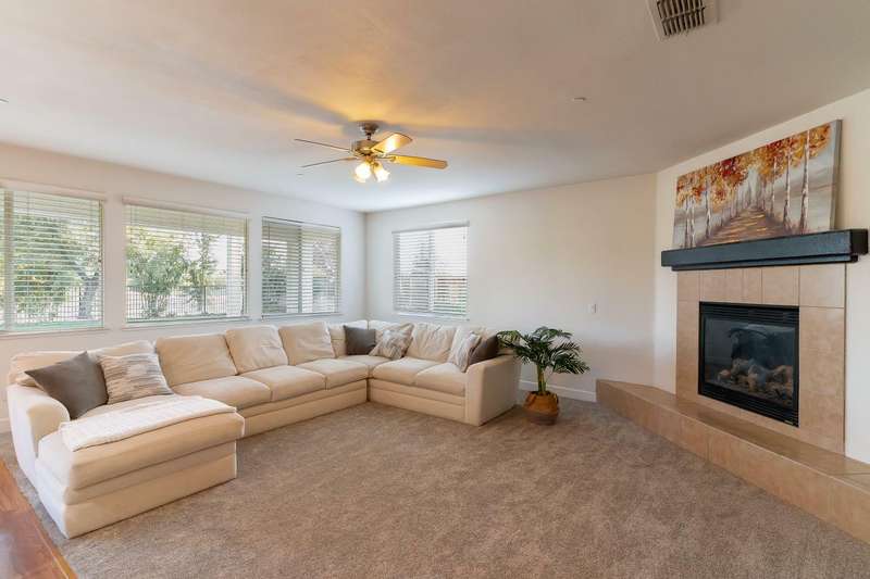 Stunning single-family home located in the prestigious Wild Wings Golf Course Community. This luxurious property features 5 bedrooms and 3 full bathrooms spread across 4,856 square feet of living space. The home boasts a bright and open floor plan, with a spacious kitchen that includes a pantry, eating area, and plenty of countertop space, and cabinet storage. The kitchen opens up to a large family room with fireplace, perfect for entertaining family and friends. The formal living and dining rooms add an extra touch of elegance, while the soaring ceilings create a sense of grandeur throughout the home and another room for downstairs office /game room or what ever your family needs maybe. The primary suite includes a cozy fireplace and an ensuite bathroom, offering a luxurious retreat. Additionally, there is a loft home office and a second family room upstairs, providing ample space for work and relaxation. This home is power by solar that will be paid off at closed of escrow. Outside, the property features a large backyard that backs up to the golf course providing expansive views of the golf course, uncovered patio making it an ideal spot for outdoor activities and relaxation. The 3-car garage offers plenty of storage space for vehicles and other belongings.