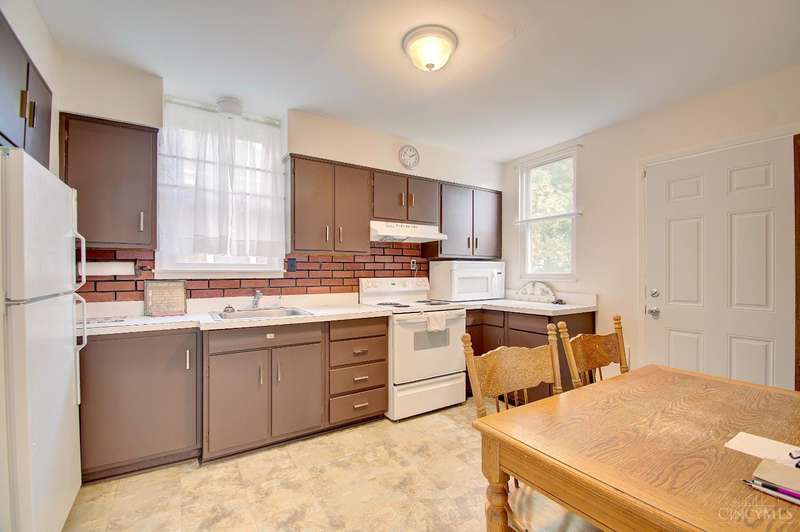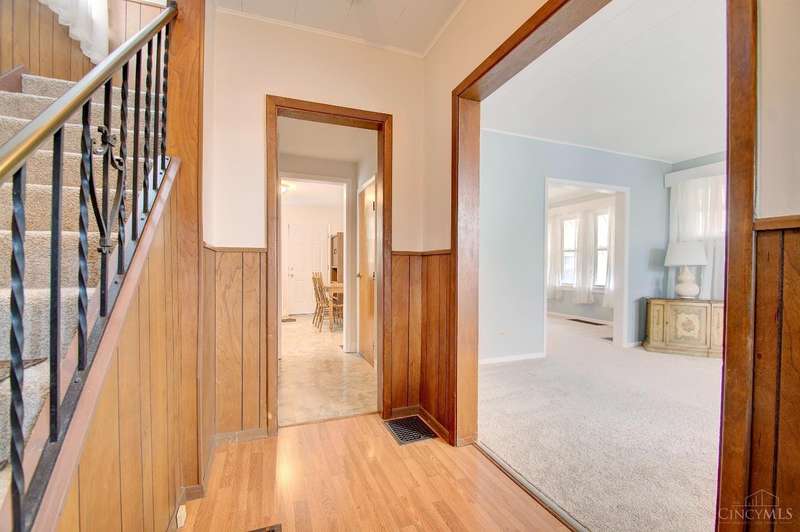 Location, location, location! This charming brick residence is situated in a prime location, close to nearby park, with easy access to highways and a short commute to downtown Cincinnati and Clifton. The bedrooms are spacious with 9-foot ceilings and plenty of space. The full finished basement features a large family room and full bathroom. Wall to wall carpet new! This unique property offers three entrances, allowing for privacy or separate living quarters while maintaining seclusion. The backyard is truly an oasis, with an oversized patio, fenced yard, detached garage with electric, workshop, and a single carport to match. A home warranty is included. Don't miss out, hurry!