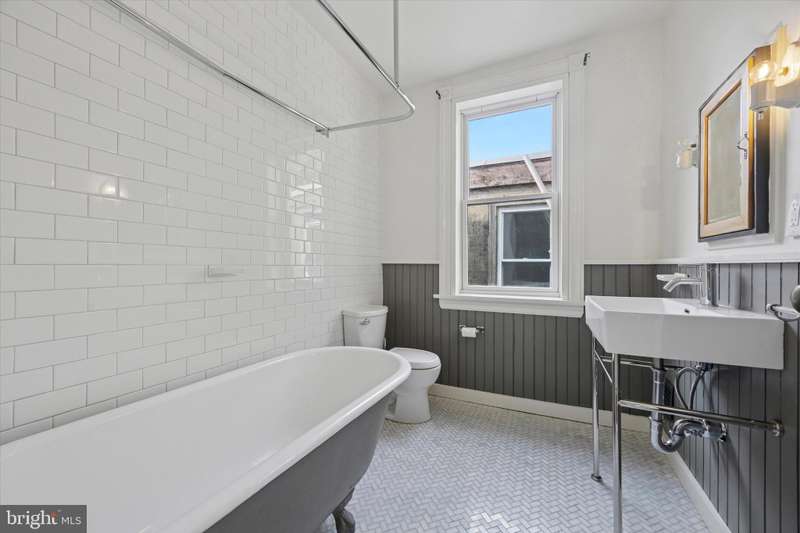 Every ounce of original charm was not only retained when this right-sized house got all the right upgrades just three years ago, it was enhanced with salvaged, vintage and pitch-perfect repro details throughout. There are original pine floors, high ceilings, just-right light fixtures, Andersen windows and at least one uber-charming element in every room. The main-floor layout provides the best of both worlds-the front living room off the entry hall is a clearly delineated space all its own, while the middle kitchen, rear dining room and back yard flow together for a contemporary open-plan feel. The living room has a decorative fireplace with gorgeous original mantel plus architectural charm from the angled set of front windows. These are a nice complement to the oversized archway with original fretwork spandril. From the hall, another oversized doorway leads to the spacious L-shaped kitchen, where white Shaker-style lower cabinets and pantry let the salvaged beadboard backsplash, statement salvaged upper cabinet and a sweet original closet with glass-paned door shine. White Caesarstone countertops with undermount sink and Grohe pull-down faucet alongside stainless steel appliances, including a slide-in five-burner range and French door fridge, make this space as effortlessly functional as it is warm and stylish. The large dining room has a salvaged butler's pantry and is flooded with light from two windows and Andersen French doors to the rear patio and lush garden. Back inside, the original staircase that has a peek-a-boo window to the kitchen leads to a rear primary suite, two more spacious bedrooms and a hall bath. The primary bedroom with a large double closet offers a peaceful view of the rear garden; its en-suite bathroom has a marble herringbone tile floor, clawfoot tub with full-wall subway tile surround, and salvaged beadboard around a vintage-inspired wall-mounted sink with chrome legs. The front bedroom is quite spacious and has a large closet; its charm is found in the square bay window. The middle bedroom is easily big enough for a double bed, if not a queen, and has an extra-deep closet. They share a hall bath with skylight, marble herringbone tile and full-wall subway wall tile, an extra-large step-in shower and pedestal sink flanked by ceramic lights. The exterior has every bit as much charm as the inside: Set behind a front garden, the handsome porchfront's exterior has a subdued sage green and gray palette that highlights the architectural details, and an unpainted original front door. And as a huge bonus, through the rear gate is an unofficial parking spot and a sweet neighborhood hang space complete with firepit. This great location puts both Germantown and Mount Airy favorites like Weaver's Way, Ultimo Coffee, Uncle Bobbie's, and of course access to the Wissahickon, all within a mile of your front door-and the Upsal St Regional Rail station only .3 miles away.