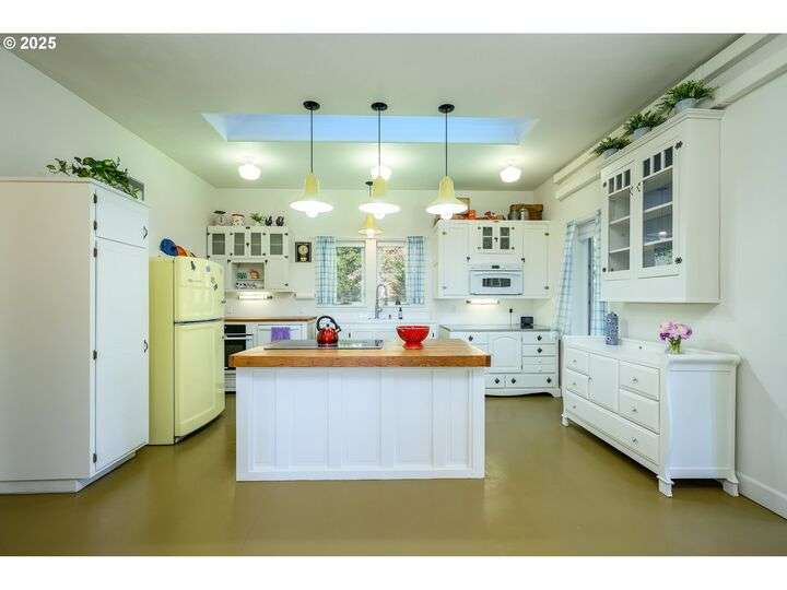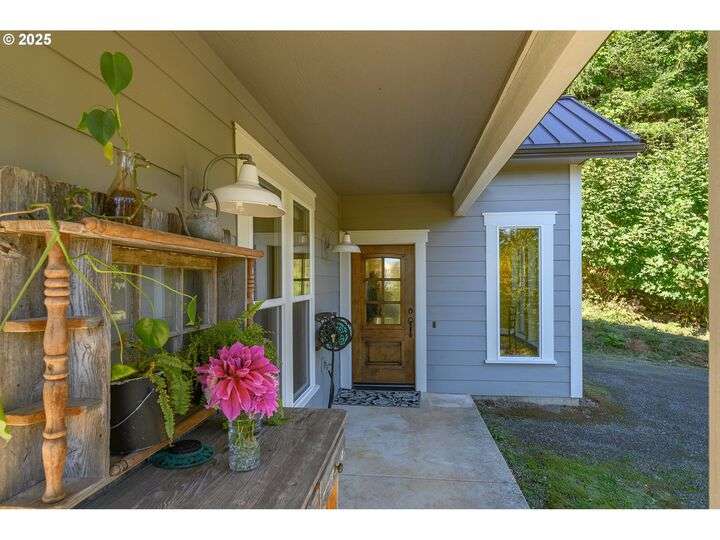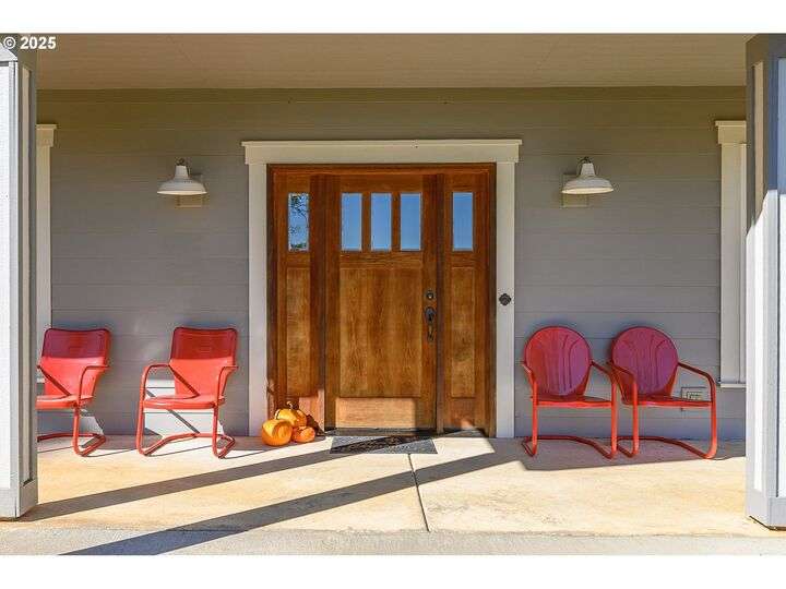 A truly one-of-a-kind home on expansive private acreage. This classic farmhouse blends carefully curated antique pieces with modern convenience. The kitchen boasts a custom island made of doors from the original homestead and barn and is topped with a Thermador induction range and pop up exhaust. Other appliances include a Bosch dishwasher, Electrolux oven and a retro styled, Big Chill fridge. There is even a 2nd oven, GE Advantium 220v, which cooks faster than a traditional oven and is a microwave. From the dual headed fan to the enameled, cast-iron wood stove with griddle cooktop, the living room is the essence of cozy comfort. Claim your favorite seat and watch the seasons change beyond the generous windows. The office shares the living room’s gorgeous view of the valley, but unique to this room the open ceiling provides a glimpse of the library above. The closet is proportioned to accommodate horizontal file cabinets and includes a dual outlet for additional office equipment. A striking wood staircase delivers you to a panoramic view of the distant Cascades featuring Mt Jefferson. The owner’s suite features soaring ceilings, two closets (one walk-in), and an attached bathroom complete with an antique soaking tub and a walk-in tiled shower. The 2nd floor continues with thoughtful touches such as a centrally located linen closet, oversized washer and dryer, a sunny guest bedroom, and entrance to the library. The property benefits from tax deferrals for both forestry and agriculture made up of 25 acres of established Doug Fir and a lavender field. Future owners might consider other crops such as grapes (hobby vineyard), hazelnuts, or a Christmas tree farm to name a few. Buyer to perform due diligence.