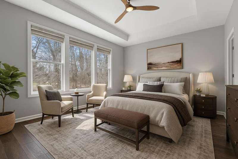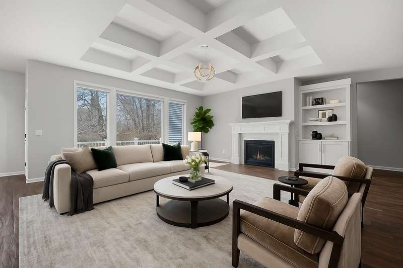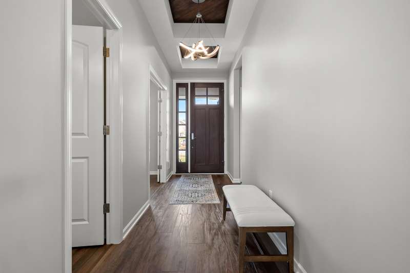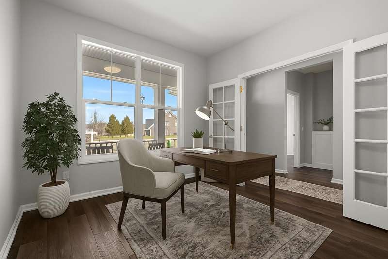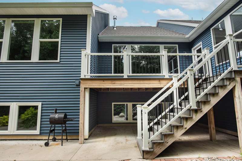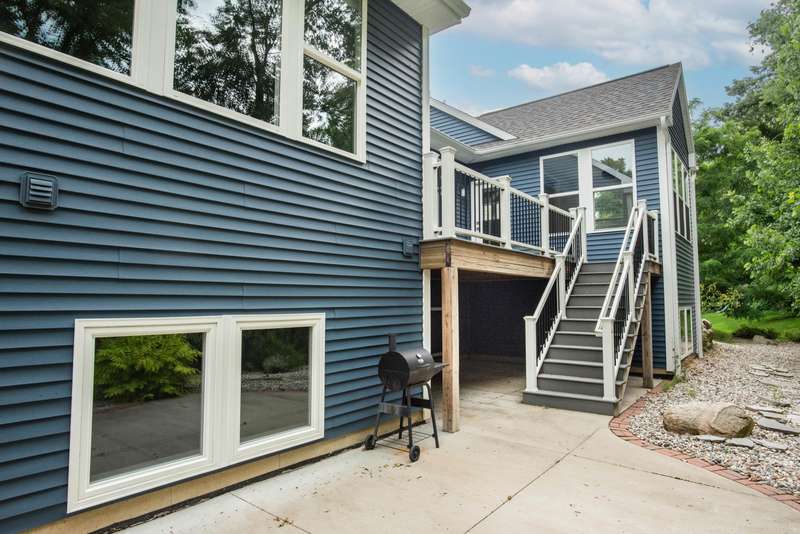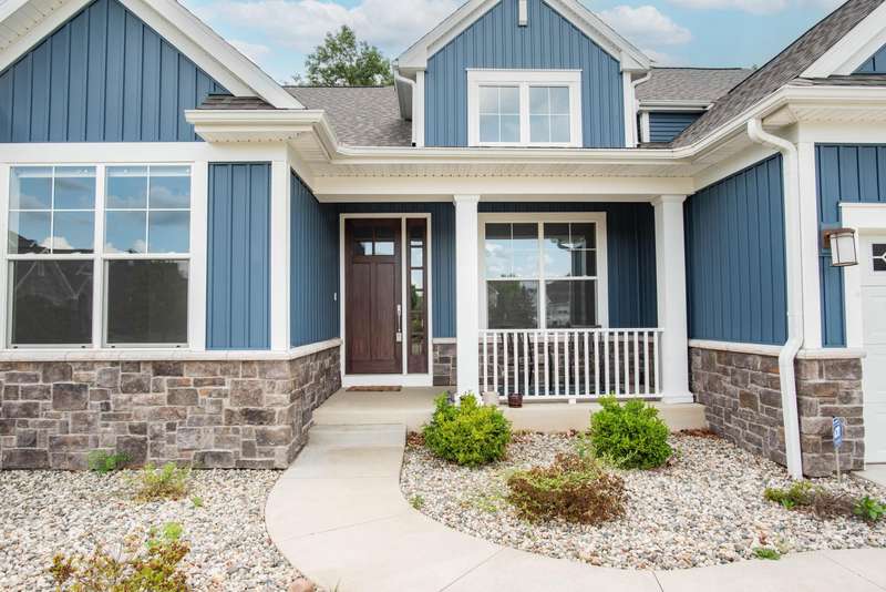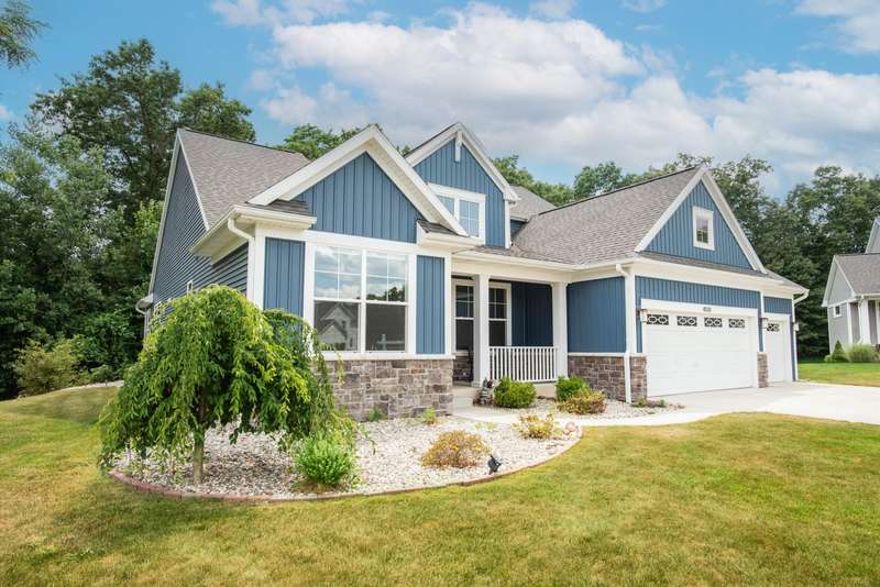 Built in 2020 located in the Portage school district, this beautiful home has been freshly painted on the main & upper levels, offering 5 bedrooms 4.5 bath , two of which are main floor primary suites. Private office w/double French drs, Four Season sunrm encased w/ windows, overlooking private scenic view. Living rm w/so much detail; gas fireplace, built-ins, box beam ceiling. Custom bench at mudroom w/ large walk in closet for all the outdoor gear. Spacious main flr. laundry rm w/ extended folding counter, utility sink, W/D included. Lower level offers large rec rm with large daylight windows. Additional unfinished framed space could be a 6th bdrm or flex rm. Luxury Vinyl plank and ceramic tile at all 3 level. This home has gutter guards, & professionally landscaped irrigation