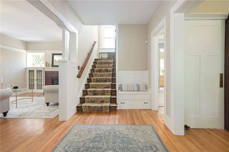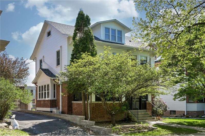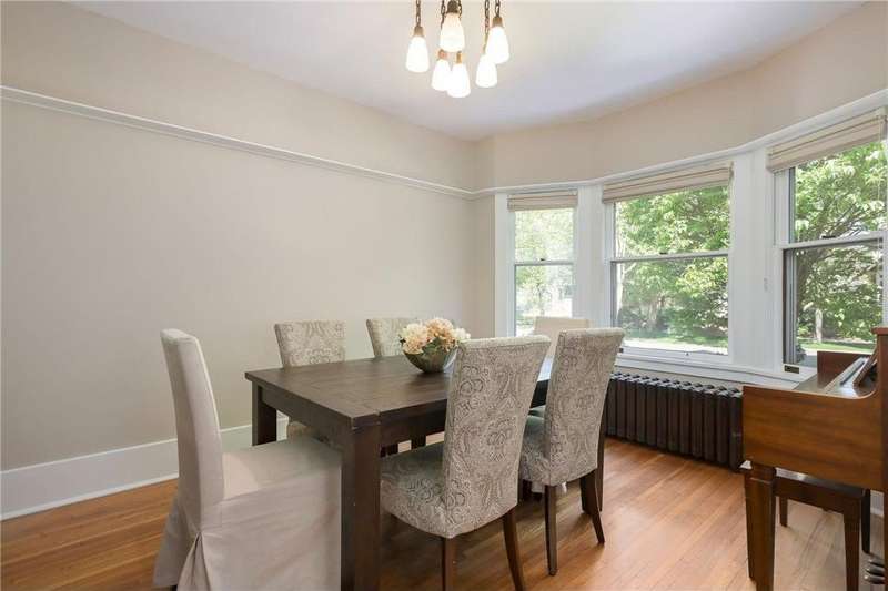Enjoy the city’s best architecture, shops, gardens, and neighbors – settle into this stately home in Summit Hill. Elegant and spacious, the main floor living room is oversized, featuring a brick fireplace and sparkling vintage crystal chandelier and sconces. The formal dining room includes an oak buffet to store linens and glassware. Kitchen with tons of cabinets, extra prep sink, and double ovens. Sweet, recently updated half bath just off the kitchen. Four generous bedrooms upstairs, great as bedrooms or offices, and treetop views from the back upper porch. Third story has an additional space, great for an office or a teenager hideaway. Warm radiant heat in winter, and mini splits for summer cooling. Deep, fenced backyard with patio space and lots of gardens and grass for playing. Roof and siding in 2023. Two car garage.