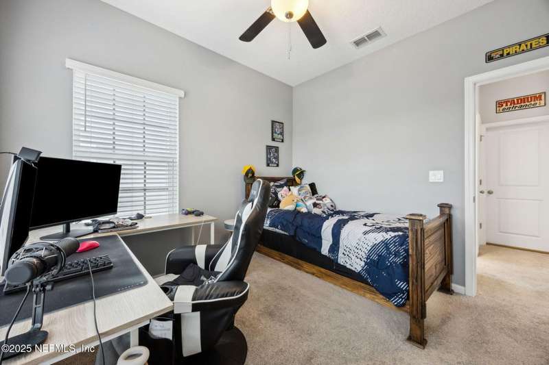 Welcome to this beautifully appointed PRESERVE-VIEW home where comfort meets elegance. This thoughtfully laid-out home offers 4 bedrooms PLUS a versatile bonus room AND a loft area-ideal for work-from-home setups, playrooms, or guest accommodations. At the heart of the home is a large family room that flows seamlessly into a gourmet kitchen, complete with stainless appliances, custom-painted backsplash, center island and tons of cabinetry & counter space. The fully upgraded kitchen flows seamlessly into a cozy breakfast nook, creating a warm & inviting atmosphere for gatherings this holiday season. The first-floor master suite is a private retreat, filled w/ natural light from oversized windows w/ a massive walk-in closet & boasting a spa-style bathroom w/garden tub, walk-in shower & dual vanities. Throughout the home, beautifully painted custom accent walls add charm & personality to this already gorgeous property - truly a piece of art! Outside, enjoy the extended front porch w/ a porch swing, a long driveway, and lush landscaping in both the front and backyard. The property backs to a peaceful preserve, offering privacy & beautiful scenic views. Additional features include a mud room, irrigation, custom light fixtures/ceiling fans, great 2nd floor storage space & more! Close proximity to 'A' rated schools, excellent local restaurants, great shopping & the BEACH. Easy access to I95 too! Wildlight has some of the best amenities in Nassau County! Pool, pickleball, tennis courts, playgrounds, nature trails, YMCA.... the list goes on & on! A gorgeous home in a gorgeous community, what more could you ask for! Schedule your private viewing today!