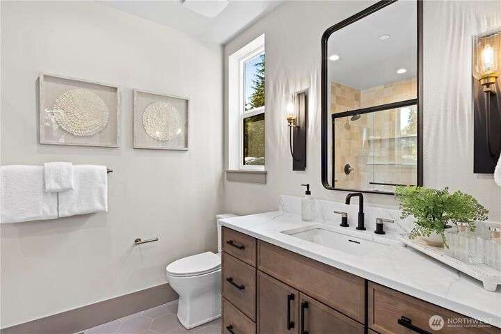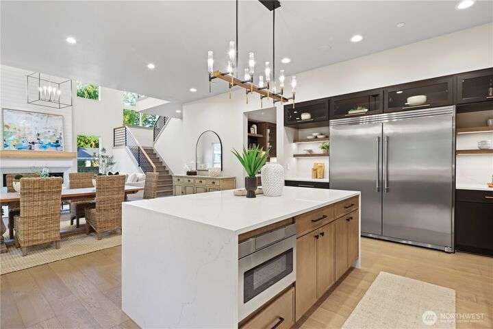 Hamish Anderson Custom Homes, renowned for Architectural Digest–worthy estates, unveils a limited-edition showcase home, Kinsale. Beyond its commanding street appeal, this design-forward NW Craftsman layers warmth, light & individuality on a rare, oversized level cul-de-sac lot. Relax in rockers w/front-row seats to bikes, trikes & sidewalk-chalk creations. Soaring 2-story great room centers on a dramatic cast-concrete fireplace, while the entertainer’s kitchen boasts a 66 refrigerator/freezer wall w/LED-lit shelving, Wolf range & quartz waterfall island. Formal dining via wet bar, office, vaulted outdoor living w/gas fire table, bonus w/snack bar & wine chiller, Control4 lighting +audio. Five bdrms incl. 3 ensuites + main-flr guest