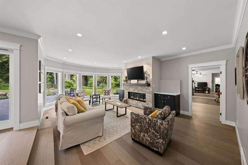 Gorgeous and completely renovated, this estate home is situated on a quiet no-through property in Elgin. Reimagined and finished in a timeless transitional style, this family home exudes quality workmanship with functionality. Walking into the grand foyer, you’re greeted by a curved staircase and leads into a spacious formal living room and adjacent dining room. Great room at the rear of the home captures beautiful views of the backyard and is finished with an updated eat-in kitchen. Four spacious bedrooms upstairs and one flex room/bedroom on the main floor with heated floors in the bathrooms. Bonus detached guest suite complete with a full kitchen. Situated on a picturesque 33,535sqft property backing onto a greenbelt with a gentle creek in the backyard creating a serene park-like oasis.