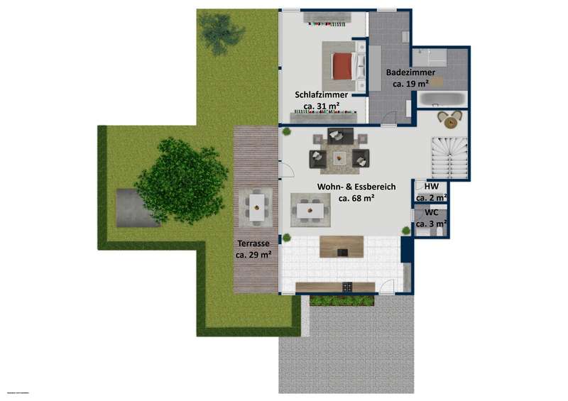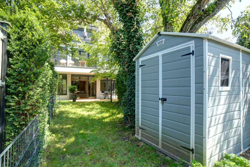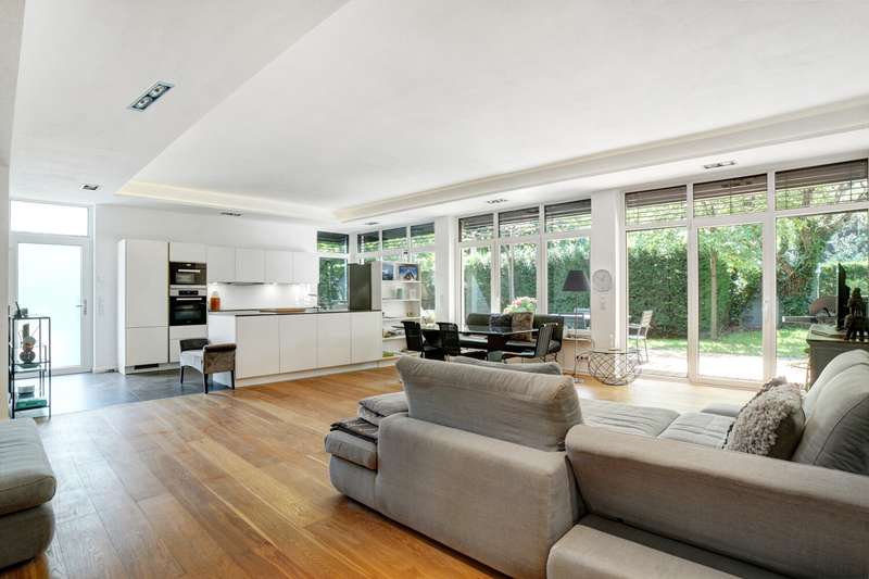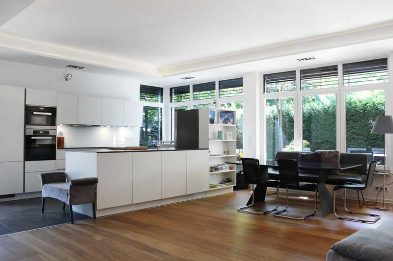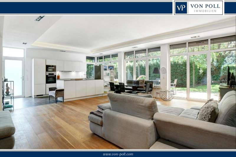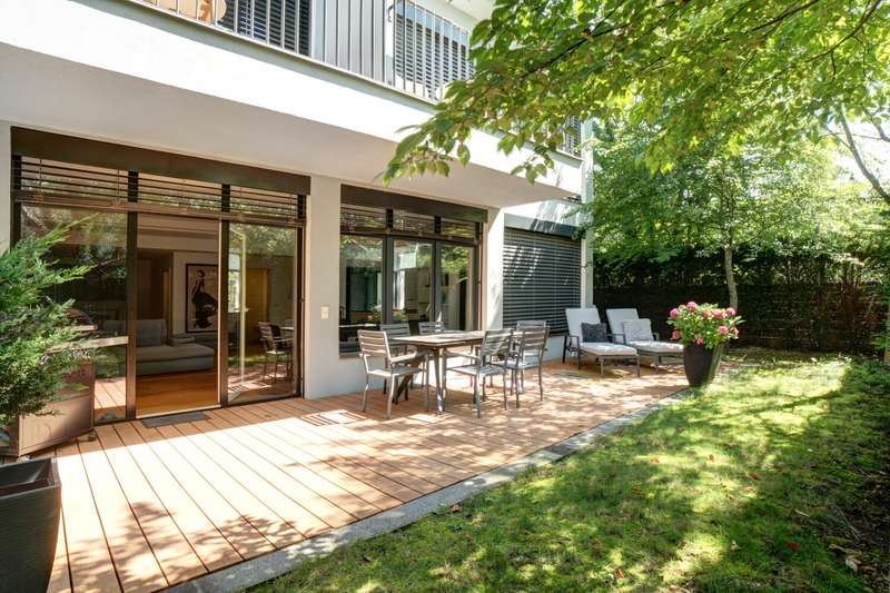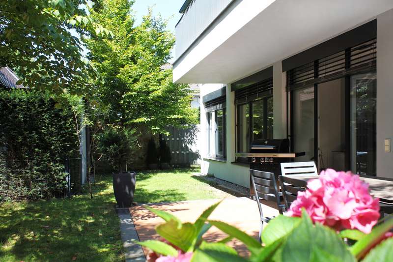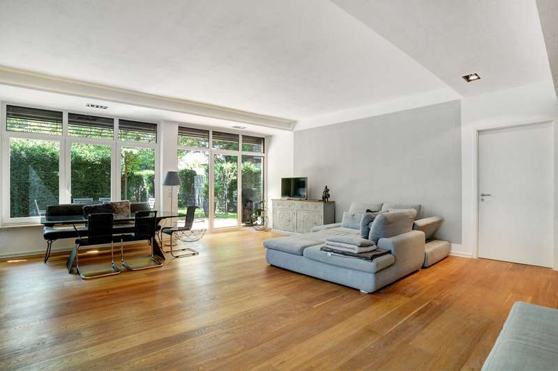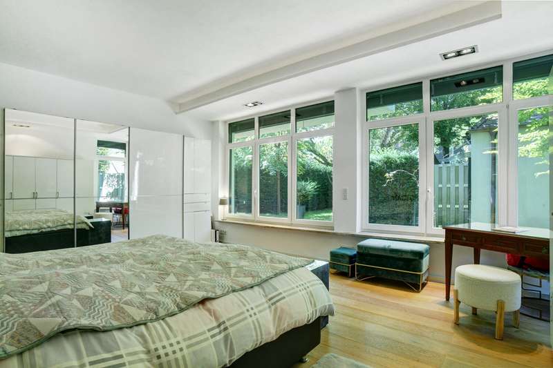 For sale is a spacious, light-flooded and barrier-free 2+1 room loft apartment with approx. 158 m² of living space on the first floor of a small condominium in a well-kept multi-family villa. A special highlight is the separate, private entrance to the apartment. You enter your new home directly - without using the communal stairwell. This ensures a high degree of privacy and gives the apartment a pleasant house-within-a-house atmosphere. The generous amount of space and the well thought-out floor plan make this apartment particularly attractive for couples who value peace, comfort and a flexible living concept. Large window fronts facing the south-west garden with electric blinds let in plenty of light and create an open, inviting living atmosphere. In combination with the high ceilings, this creates a unique sense of space. Another highlight is the approx. 180 m² private south-west-facing garden, which is assigned exclusively to this unit. It offers space for relaxation, for sociable evenings outdoors or simply as a personal retreat in the middle of the city. The apartment is complemented by a basement area with its own bathroom that can be used as a living space - ideal as a guest room, hobby room, wellness area or home cinema. The basement area is heated, has its own bathroom and is directly accessible via an internal connection to the underground garage. Perfect as a guest area or for professionals working from home. Overall, this property combines upscale living comfort, maximum privacy, barrier-free accessibility and an ideal location - perfect for couples who demand quality, space and tranquillity.
