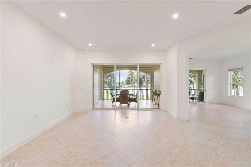 Experience refined resort-style living in this spacious 3-bedroom + den, 3-bath end-unit condo, ideally situated in the sought-after Cherry Oaks community. Offering over 3,000 sq. ft. of thoughtfully designed living space, this residence seamlessly blends comfort, style, and function. Step onto the oversized lanai and take in sweeping golf course and tranquil water views - the perfect backdrop for relaxing evenings or entertaining guests. The gourmet eat-in kitchen features granite countertops and a large pantry, ideal for everyday meals or hosting dinner in the elegant living-dining area. The versatile den offers a quiet retreat for work, reading, or hobbies. Additional features include high ceilings, abundant storage, a private 2-car garage, storm screens, and an elevator for added convenience. This move-in ready home is a rare opportunity to enjoy stunning views and exceptional space in one of the area's most desirable neighborhoods. The resort style community of Fiddler's Creek is enhanced by a club and spa, fitness center, swimming pools, two golf courses, tennis courts, pickleball courts, a bocce court, fine and casual dining, social activities, and miles of biking and walking paths. Optional beach club and marina memberships are available. Experience the epitome of luxury living, where every detail is thoughtfully curated to complement your lifestyle. Some listing photos are virtually staged.
