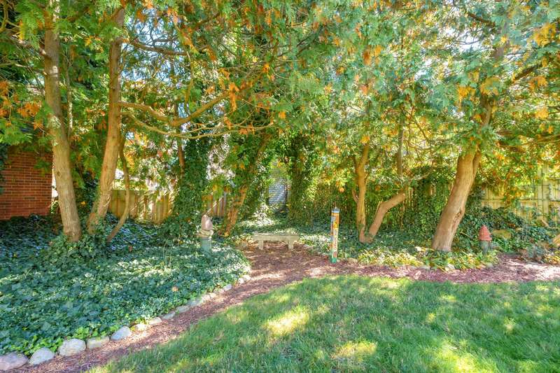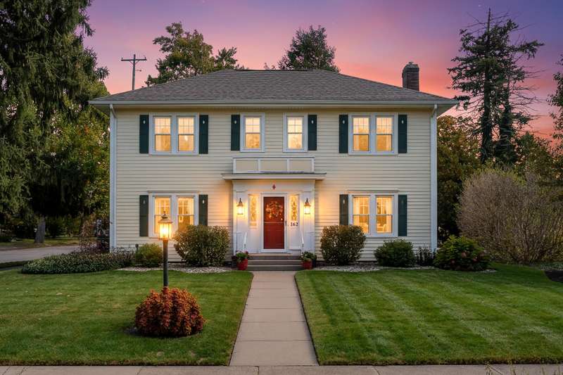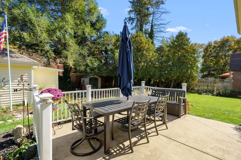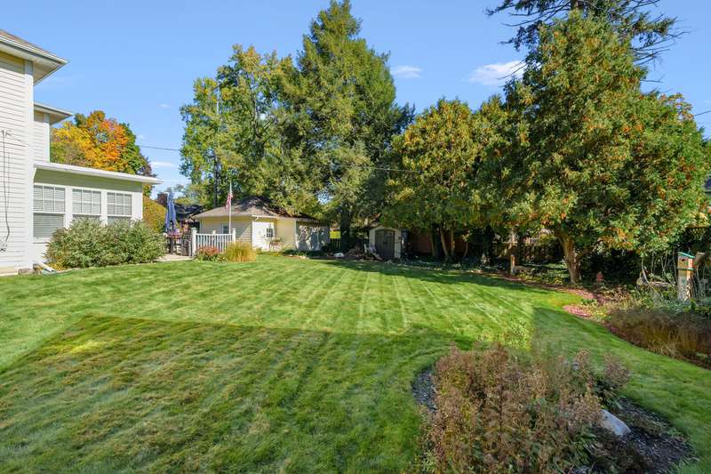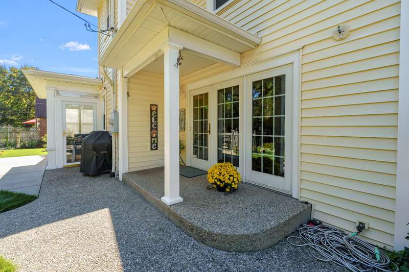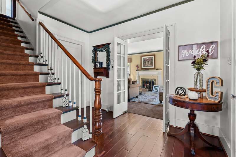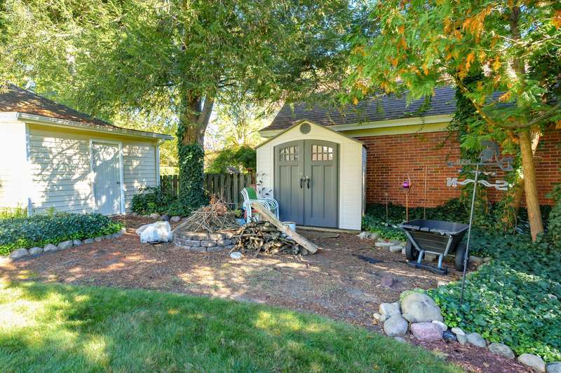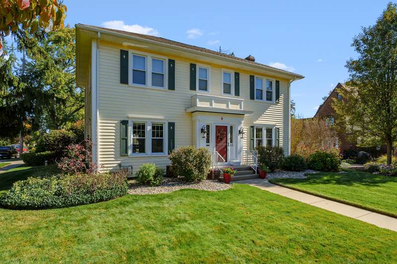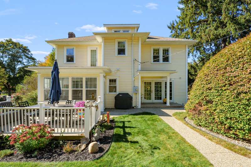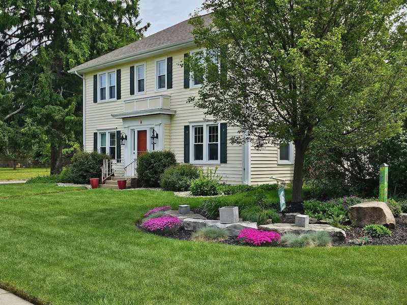 This gorgeous and spacious 4-bed, 3-bath home is located in a desirable neighborhood, conveniently close to a hospital, shopping, dining, and other amenities. Situated on a beautifully landscaped 0.275-acre corner lot, this home welcomes you with a hallway featuring hardwood floors and a stylish stairway. Hardwood floors extend into the formal dining area and a large kitchen with ample counter space and access to the back patio. The main level also includes a full bath, a large living room with a fireplace, and sliders leading to a sunroom. Upstairs, you'll find a good-sized primary bedroom, three additional bedrooms, another full bath, and attic access for extra storage. The finished basement boasts a large rec room with a wet bar, a craft room, a laundry room, a half bath, and a storage room. Outside, enjoy a 2-car detached garage, a large patio perfect for entertaining, a beautifully landscaped backyard with a storage shed, and a fire pit. Peace and tranquility while still in town.