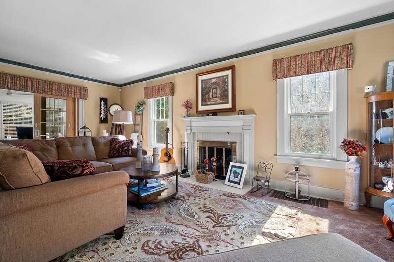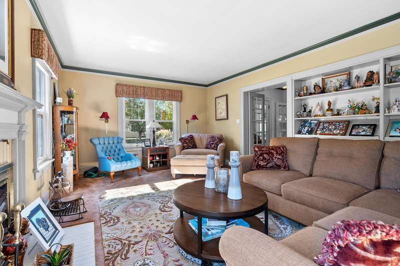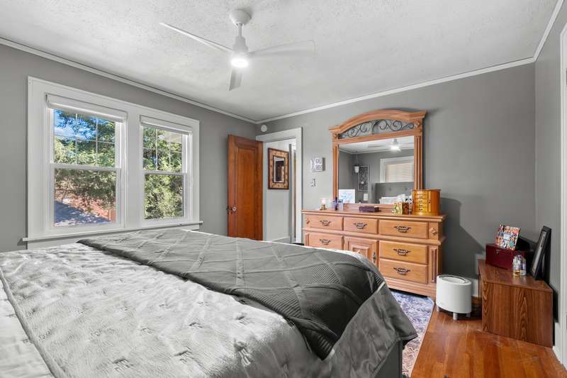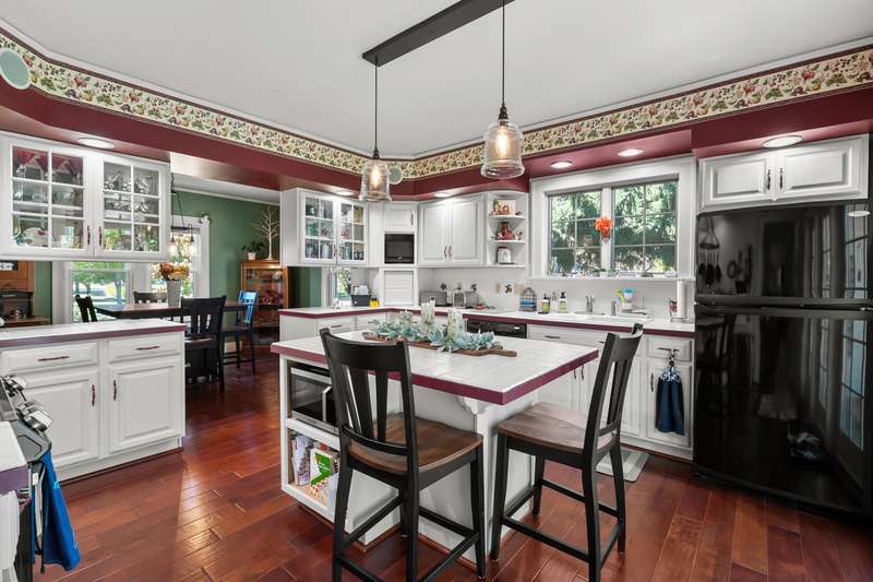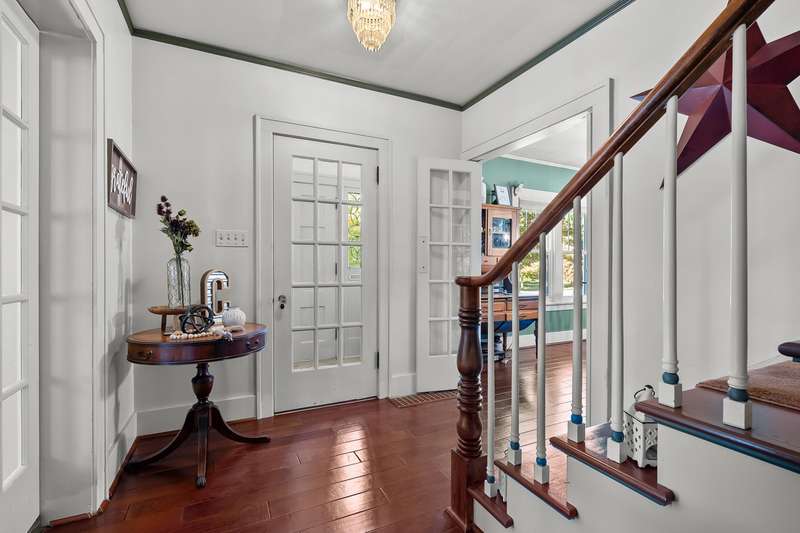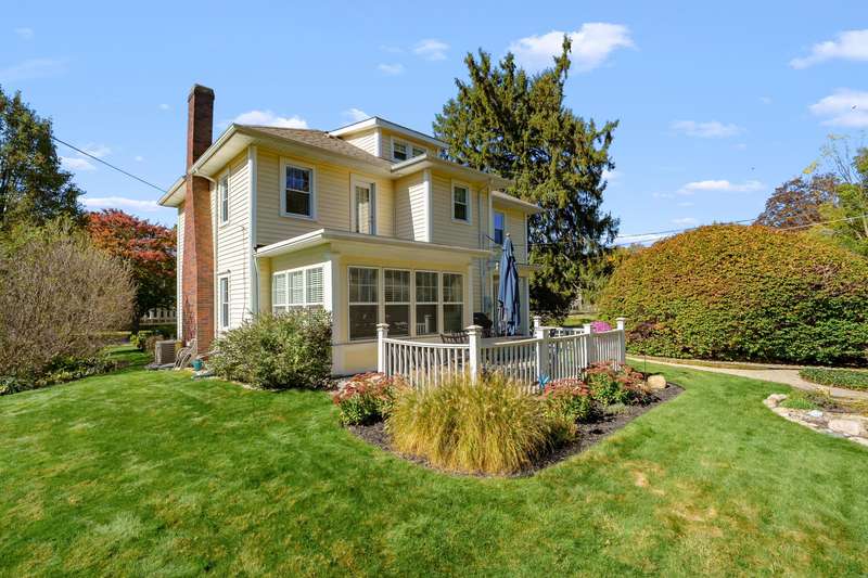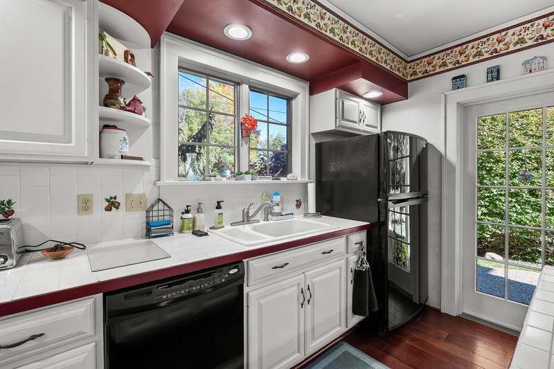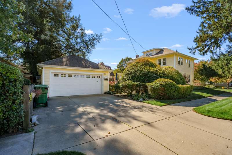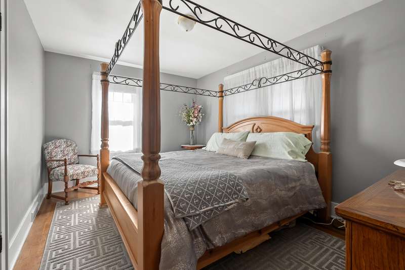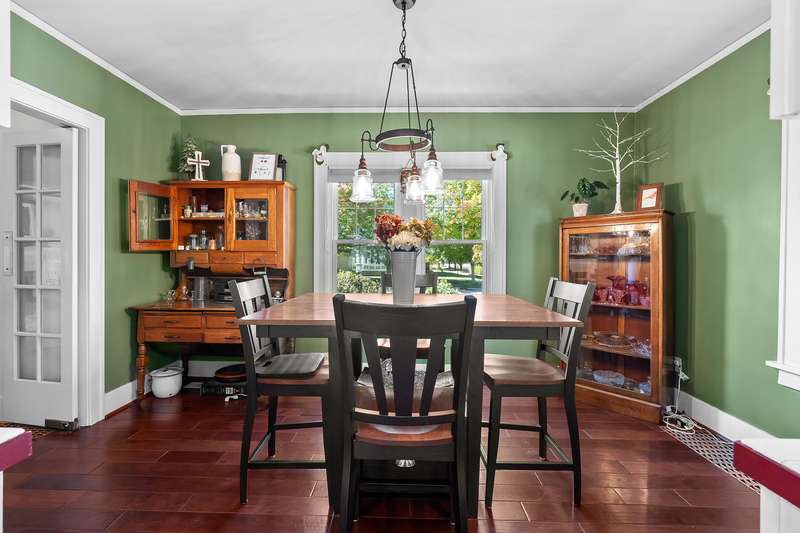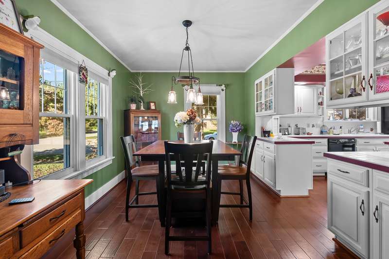 This gorgeous and spacious 4-bed, 3-bath home is located in a desirable neighborhood, conveniently close to a hospital, shopping, dining, and other amenities. Situated on a beautifully landscaped 0.275-acre corner lot, this home welcomes you with a hallway featuring hardwood floors and a stylish stairway. Hardwood floors extend into the formal dining area and a large kitchen with ample counter space and access to the back patio. The main level also includes a full bath, a large living room with a fireplace, and sliders leading to a sunroom. Upstairs, you'll find a good-sized primary bedroom, three additional bedrooms, another full bath, and attic access for extra storage. The finished basement boasts a large rec room with a wet bar, a craft room, a laundry room, a half bath, and a storage room. Outside, enjoy a 2-car detached garage, a large patio perfect for entertaining, a beautifully landscaped backyard with a storage shed, and a fire pit. Peace and tranquility while still in town.