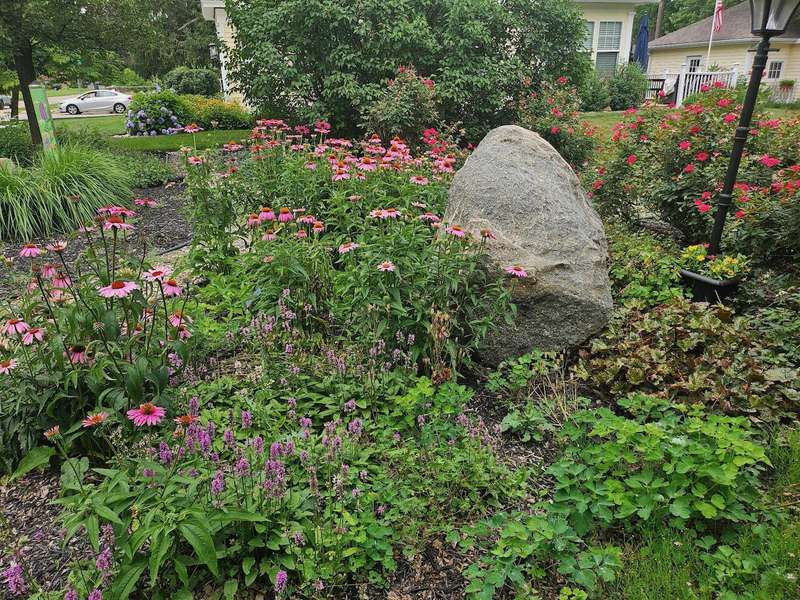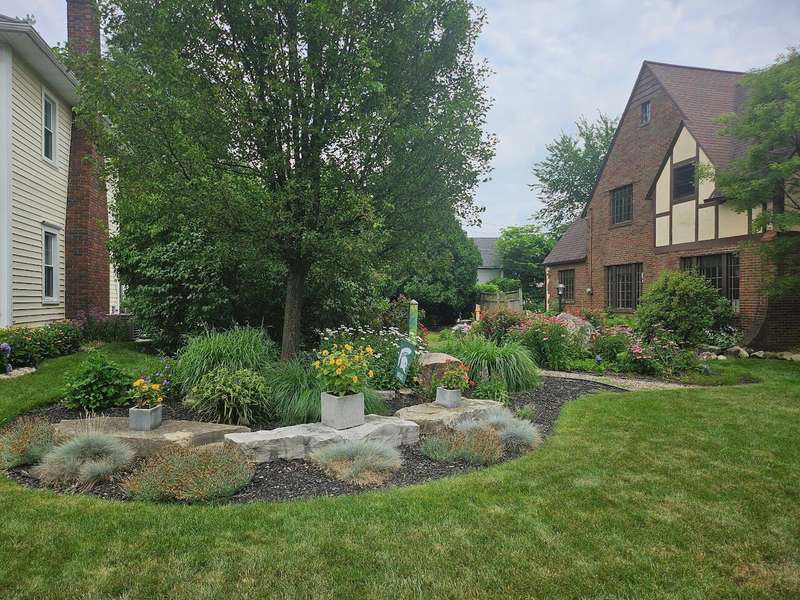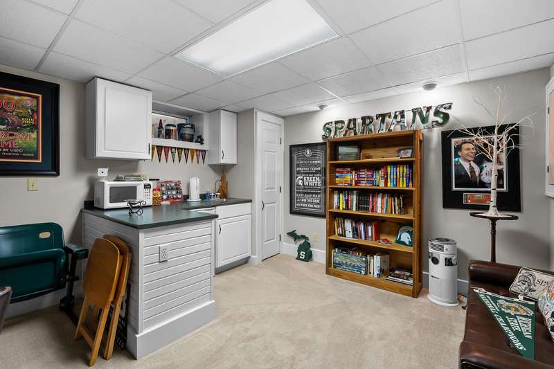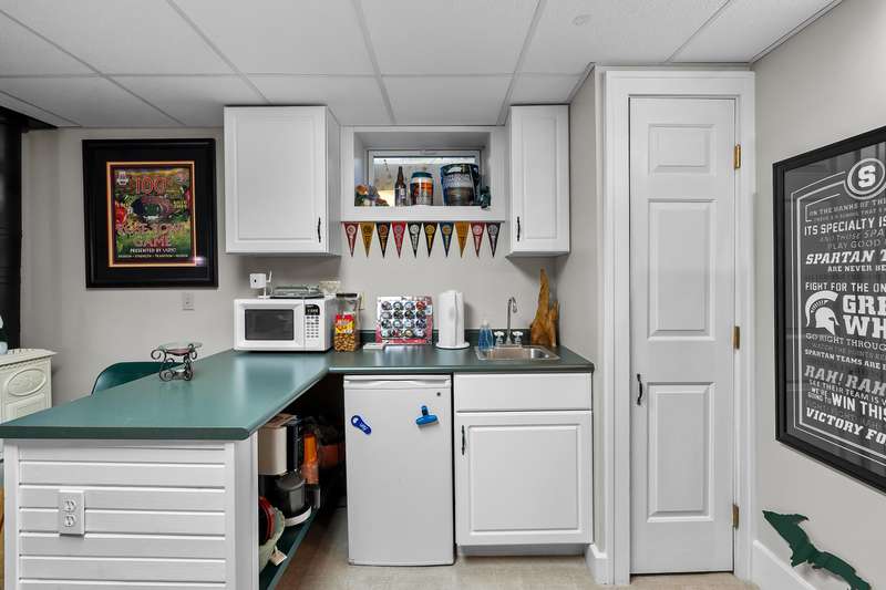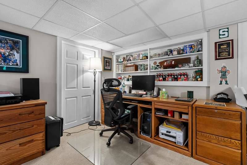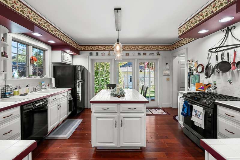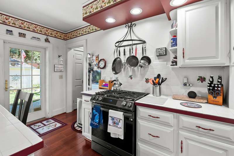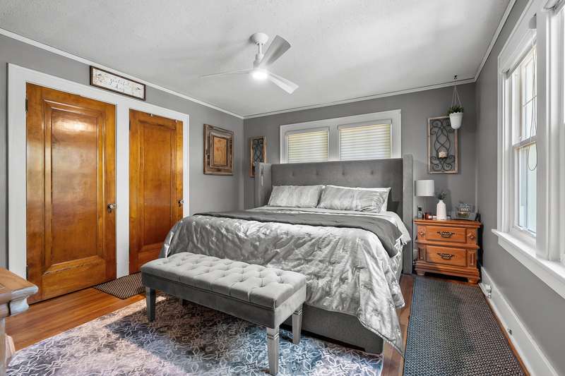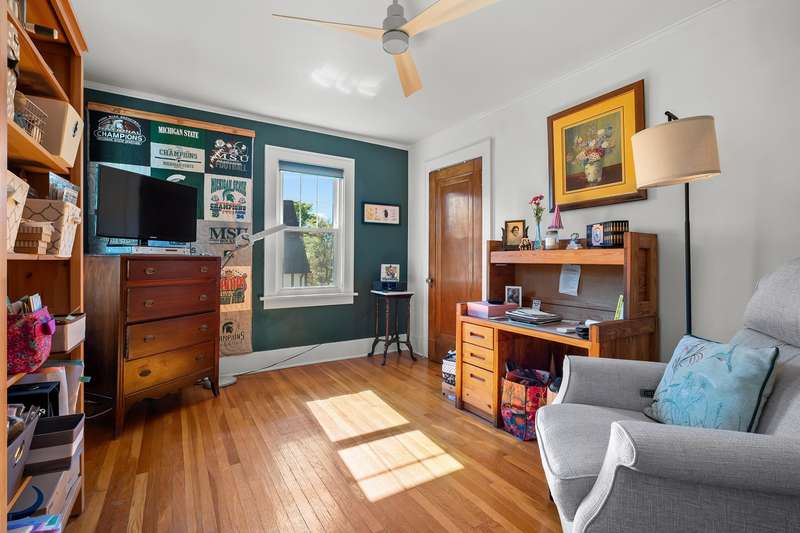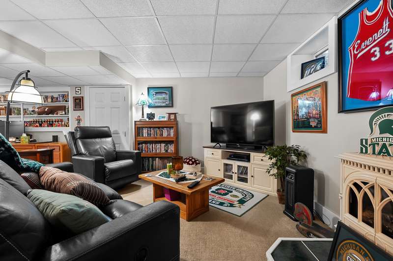 This gorgeous and spacious 4-bed, 3-bath home is located in a desirable neighborhood, conveniently close to a hospital, shopping, dining, and other amenities. Situated on a beautifully landscaped 0.275-acre corner lot, this home welcomes you with a hallway featuring hardwood floors and a stylish stairway. Hardwood floors extend into the formal dining area and a large kitchen with ample counter space and access to the back patio. The main level also includes a full bath, a large living room with a fireplace, and sliders leading to a sunroom. Upstairs, you'll find a good-sized primary bedroom, three additional bedrooms, another full bath, and attic access for extra storage. The finished basement boasts a large rec room with a wet bar, a craft room, a laundry room, a half bath, and a storage room. Outside, enjoy a 2-car detached garage, a large patio perfect for entertaining, a beautifully landscaped backyard with a storage shed, and a fire pit. Peace and tranquility while still in town.