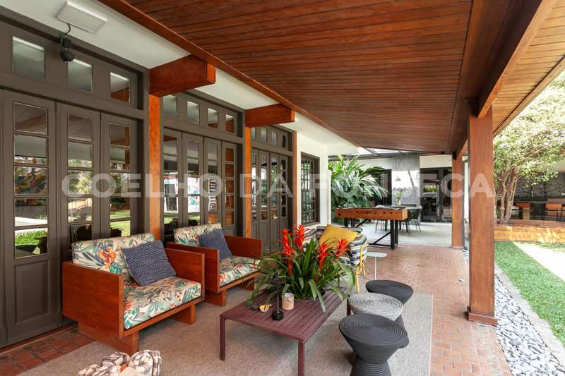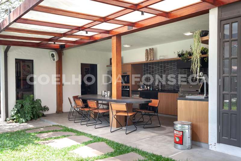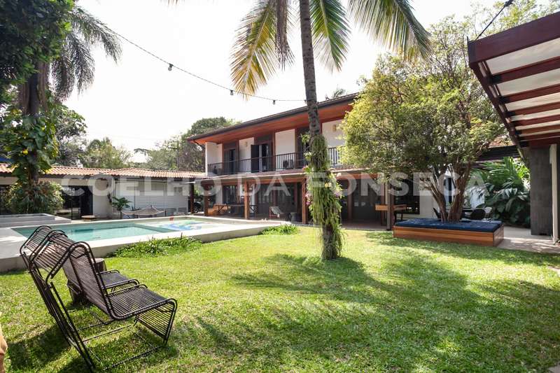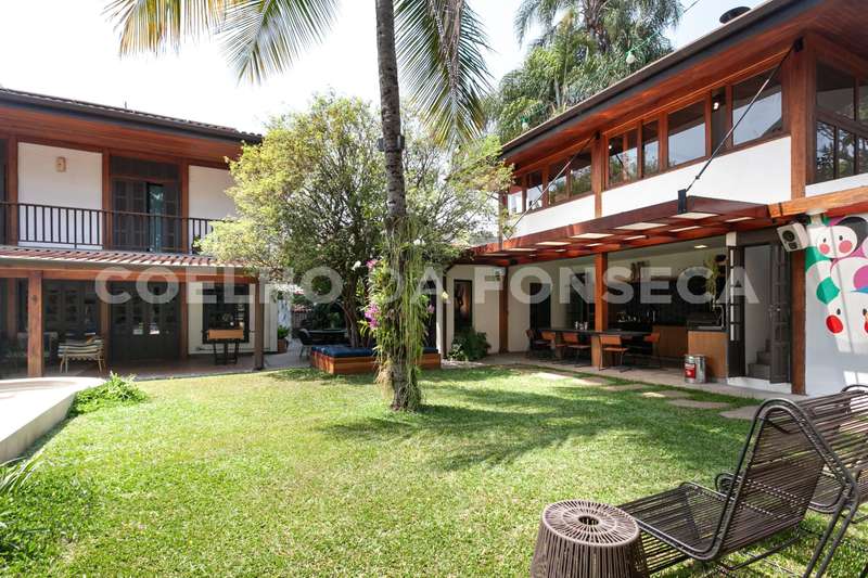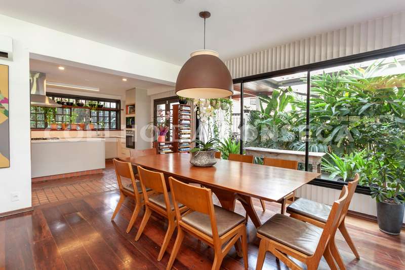O terreno, com mais de 1.000m², abraça a casa e proporciona uma imersão total no verde, com árvores majestosas e um projeto de jardinagem cuidadosamente elaborado. A construção de 780m² oferece amplos espaços, começando por um belíssimo living integrado para 4 ambientes, com vista para o jardim e a piscina. Um charme extra fica por conta de uma exuberante jabuticabeira, que enriquece o ambiente ao lado da piscina e lareira, criando uma atmosfera única de aconchego.\r\r\r