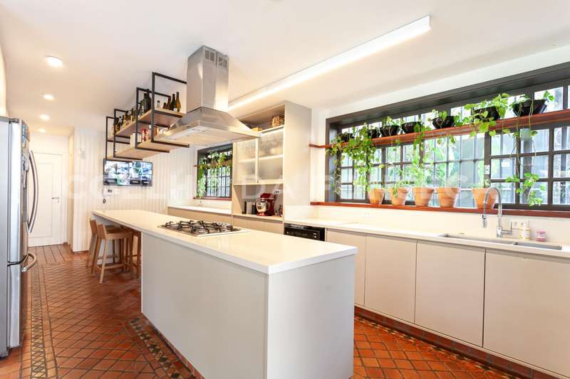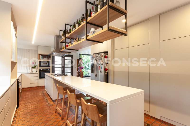 A cozinha principal, moderna e espaçosa, equipada com uma ilha central, convida a momentos de convivência e preparo de refeições deliciosas em casa. Além disso, há uma cozinha adicional que se conecta ao living, proporcionando ainda mais praticidade no dia a dia.\r\r\r