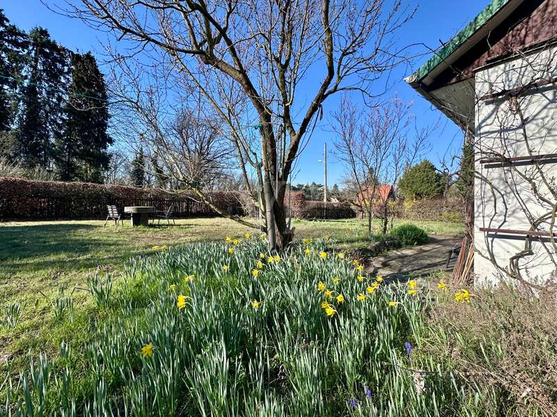 This enchanting wooden house from 1922 is located in the heart of the famous garden city of Hellerau and combines historical charm with modern living comfort in a unique way. With a generous living space of approx. 208 m² and a plot area of approx. 790 m², the property offers a wide range of options for individual living and relaxation - a true collector's item for fans of historical architecture. The house has been carefully modernized over the years, with great care taken to preserve its original character. It exudes the timeless charm of bygone eras and creates an unmistakable living atmosphere. A particular highlight of the property is the stone studio extension built in 1935. This has been extensively renovated, with the statics completely rebuilt and the roof also thermally insulated. Large glass fronts provide a light-flooded ambience and offer an idyllic view of the greenery - perfect for creative work or as a personal retreat. Access to the loft was also created by installing a skylight, which offers additional usage options. The outdoor seating area in the garden invites you to linger and relax in the peaceful, green surroundings. Here you can enjoy the special character of Gartenstadt Hellerau to the full. The property has a full basement and has been continuously maintained. The roof was renewed in 2012 so that it meets today's standards. Heating is provided by an efficient gas condensing boiler, which combines contemporary energy efficiency with comfortable warmth. The electrics in the studio extension were renewed in 2011/12 and also meet modern requirements. This unique property is a real gem for lovers of historic living culture. Nestled in the peaceful, green surroundings of Gartenstadt Hellerau with direct access to the nearby park, it combines the beauty of bygone times with modern comfort and offers a special kind of living space. We look forward to hearing from you! Your team from VON POLL IMMOBILIEN - Shop Dresden