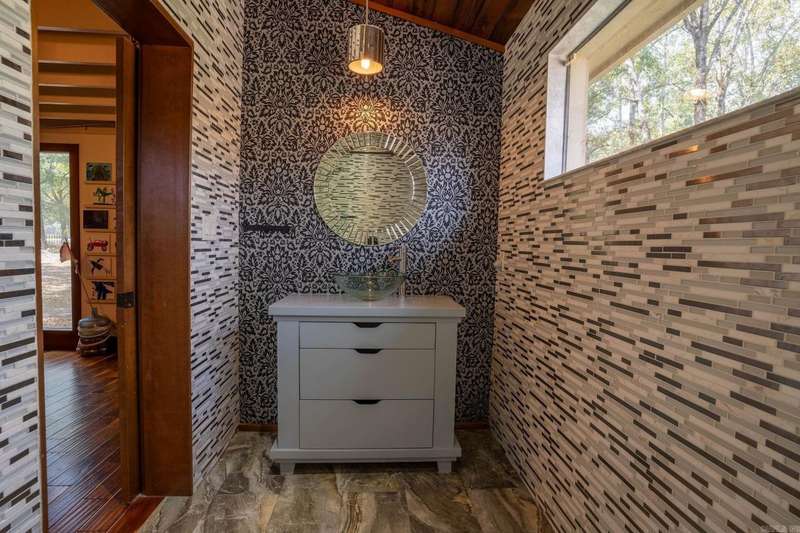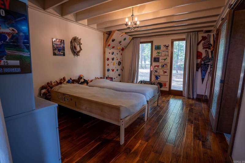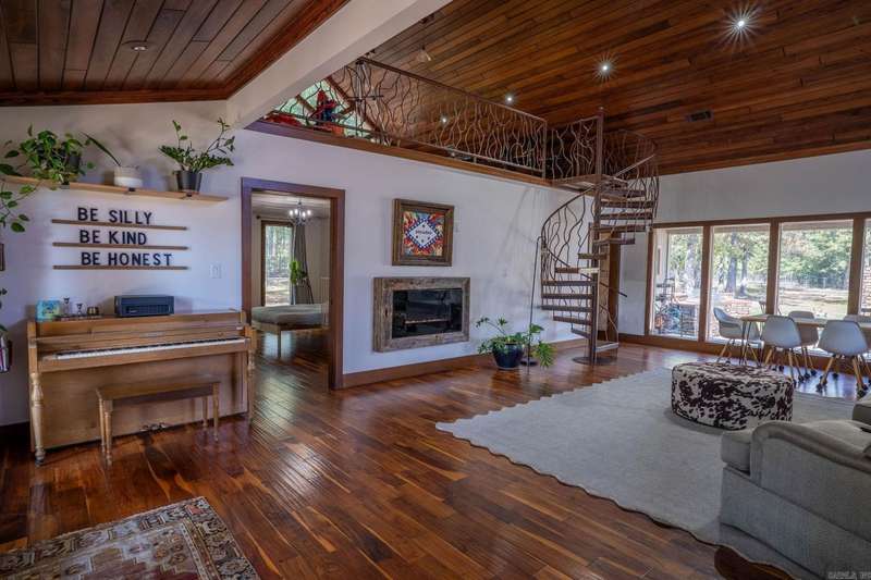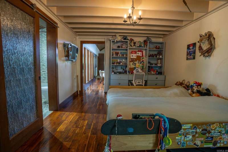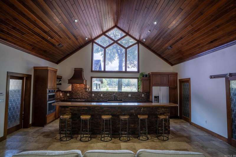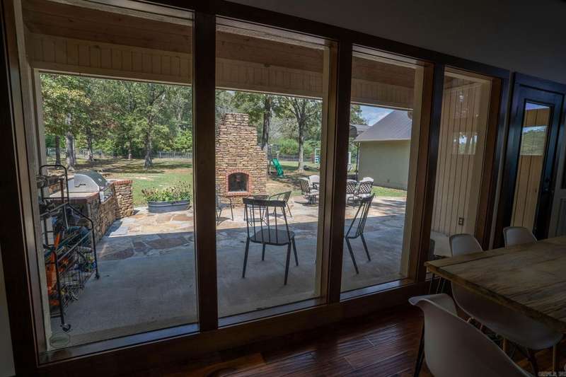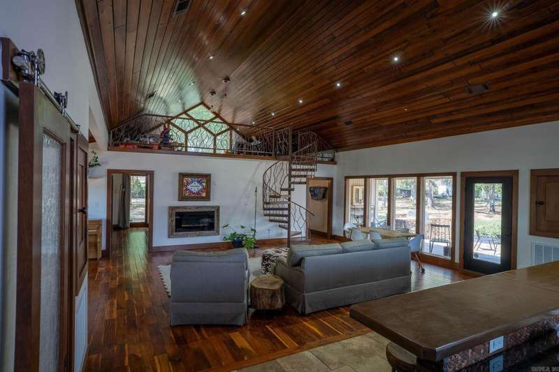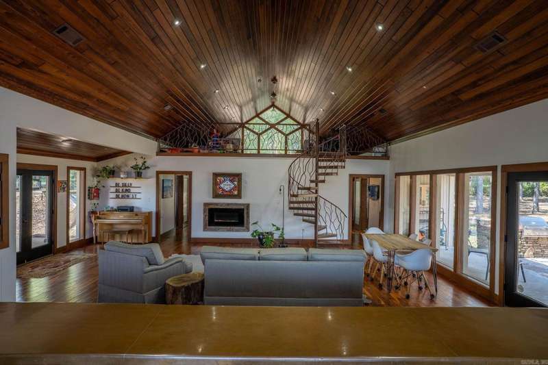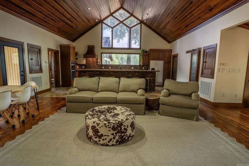 custom home on 2 unrestricted acres just 2 miles from Eden Isle Marina and Greers Ferry Lake, The floor plan encompasses 3 roomy bedrooms, and 3 and 1/2 bathrooms, a private balcony area, giving you just under 3,000 sf of spacious elegance! The interior includes custom valulted wood ceilings, wood flooring, two gas fire places, one in the master bedroom, The generously proportioned interior flows effortlessly from the open-plan living space to the multiple private patios perfect for family gatherings and entertaining. back patio is real stone and includes a natural stone dry stacked fire place, and a built in gas grill and sink, covered front porch. your dogs will love the 2 acres that is completely fenced with rod iron fencing and a security gate, see virtural tour and floor plan in pictures