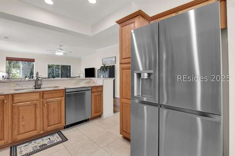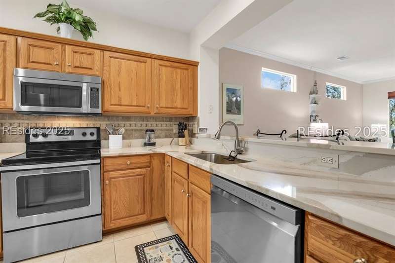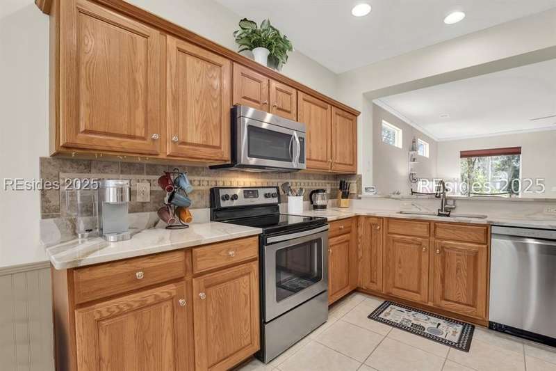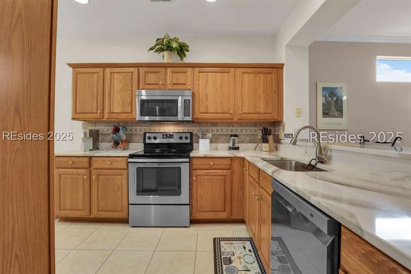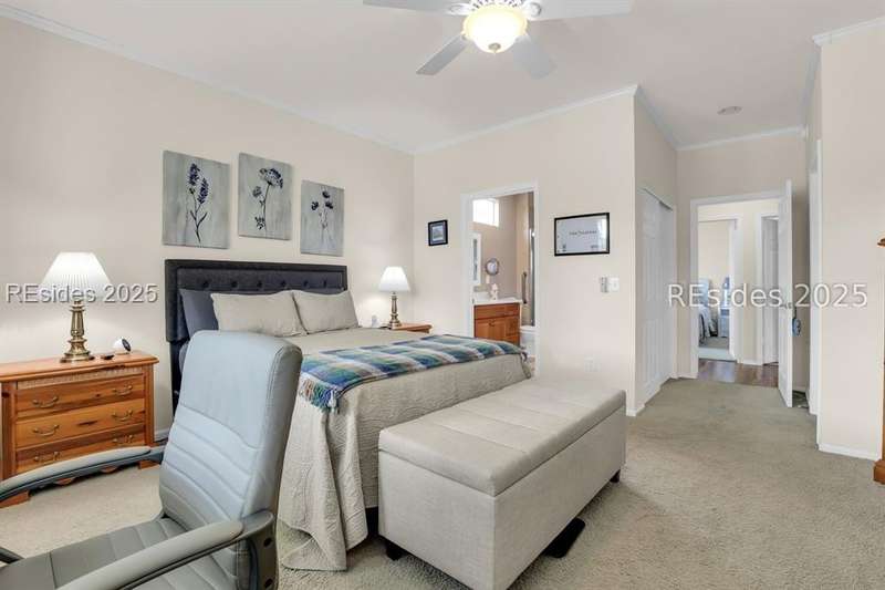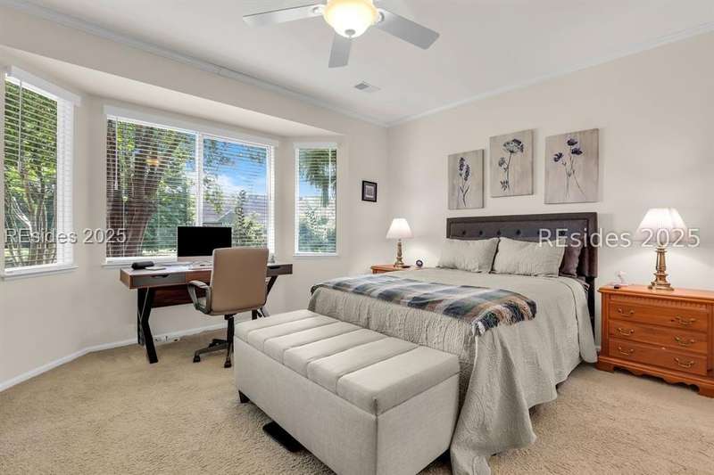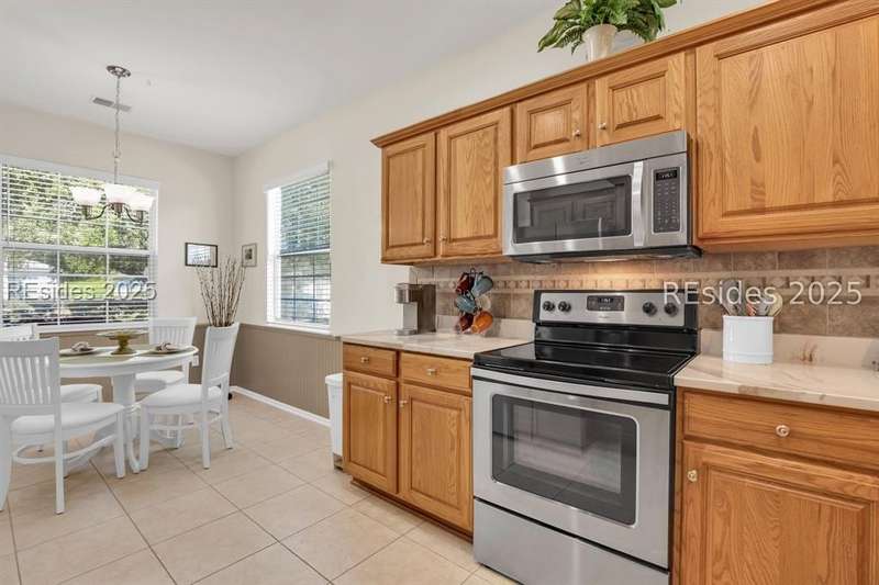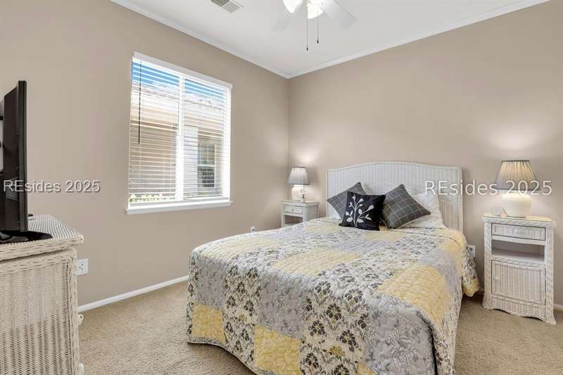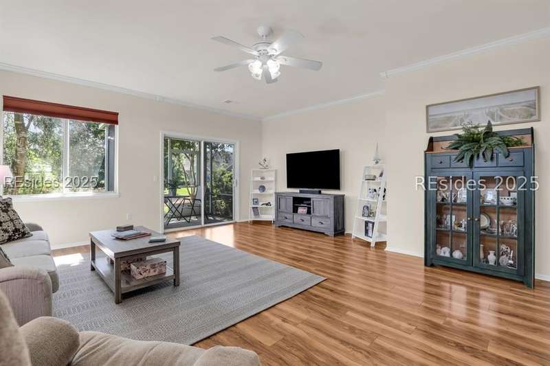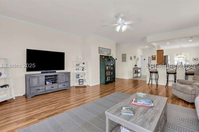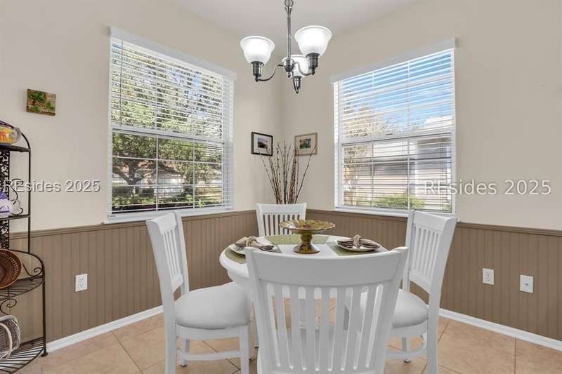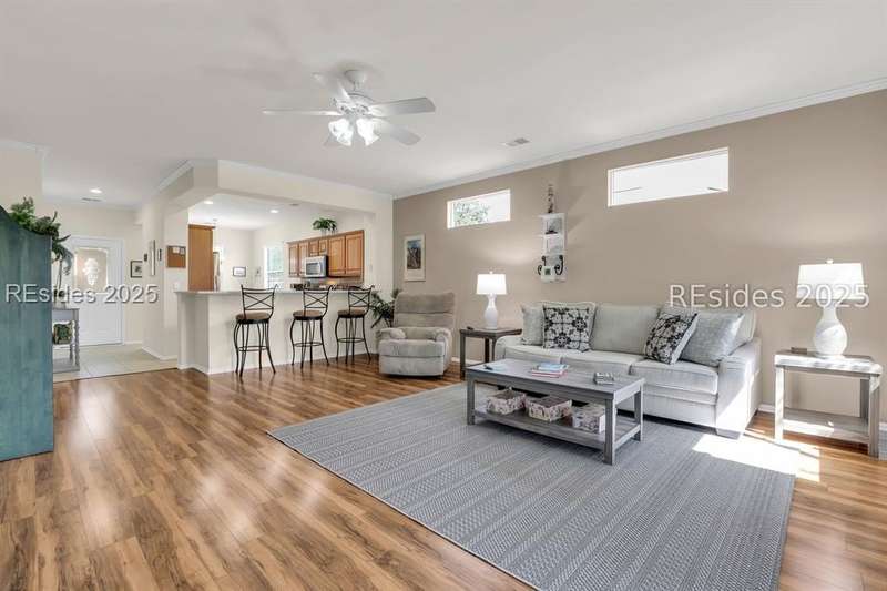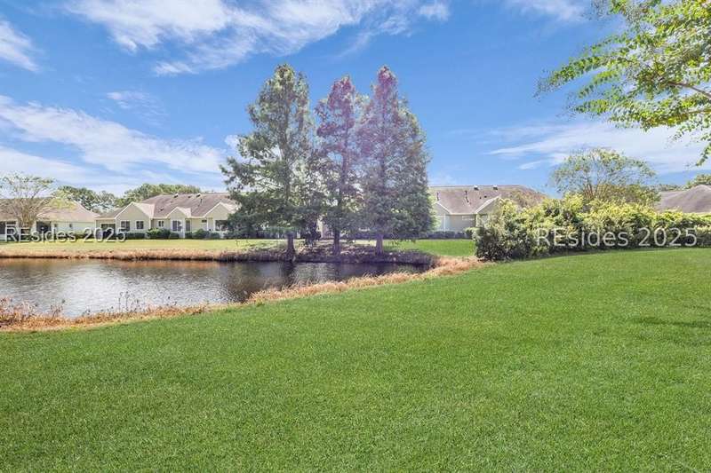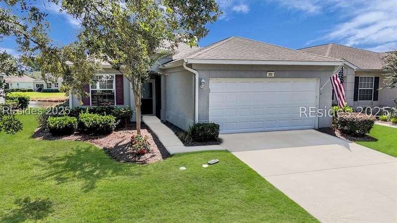 Welcome to your charming Sun City Hilton Head retreat! This delightful Chesapeake cottage combines comfort, style, and convenience in one perfect package. Light fills the Great Room through dramatic clerestory windows, enhanced by crown molding and rich LVP flooring. The eat-in kitchen shines with quartz countertops, stainless appliances and a breakfast bar open to the Great Room. A screened porch creates an ideal flow for indoor-outdoor living. A bay-windowed primary suite offers a walk-in closet and private bath with tiled shower. The guest room is adjacent to a full bath. Laundry Room abuts the 2-car garage entry. The cottage is in a prime location near the end of the cul-de-sac and has a fabulous lagoon view.