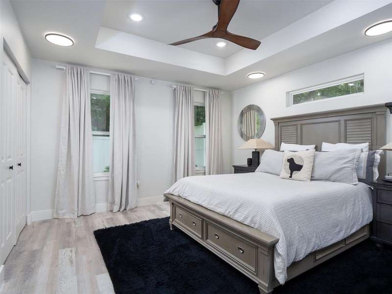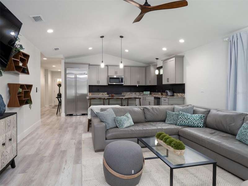 Prime UF Location ~ 2023-Built Modern Charmer Near the University of Florida ~ ~ Move-in ready and thoughtfully crafted, this 2023-built 3-Bedroom, 2-Bath home offers a rare chance to own a modern residence near the University of Florida, downtown Gainesville, with excellent proximity to UF Health/Shands. Perfectly situated in the heart of Gator Country, it combines high-end finishes with everyday convenience. ~ ~ Inside, the open-concept layout is designed for both comfort and style, featuring vaulted ceilings in the kitchen and family room, smooth-finish walls, recessed LED lighting, and an eye-catching Italian tile backsplash. The chef’s kitchen is a standout with tall soft-close cabinetry, granite countertops, a flush-mount refrigerator, and detailed tile work. Both bathrooms showcase luxury upgrades, including glass shower doors, granite vanities, backlit mirrors, and generous storage. The primary suite is a private retreat with a dramatic coffered ceiling and spa-inspired ensuite. ~ ~ Security and function come built-in, with a complete surveillance system (front and rear cameras plus door and window monitoring) and an oversized garage boasting epoxy flooring, exterior keypad entry, Tesla multi port charger to accommodate any electric car, laundry and plenty of room for a vehicle plus scooters and/or bikes. ~ ~ The exterior is equally impressive, offering privacy and curb appeal with a fully fenced yard, aluminum gates, professional landscaping, irrigation system, solar lighting, a patio area, and extra off-street parking. Underground utilities further enhance the home’s clean, polished look. ~ ~ With its unbeatable location, modern design, and thoughtful upgrades, this home is a true gem—don’t miss your chance to call it yours!