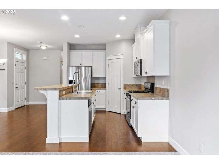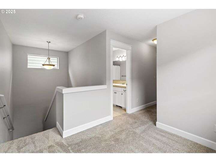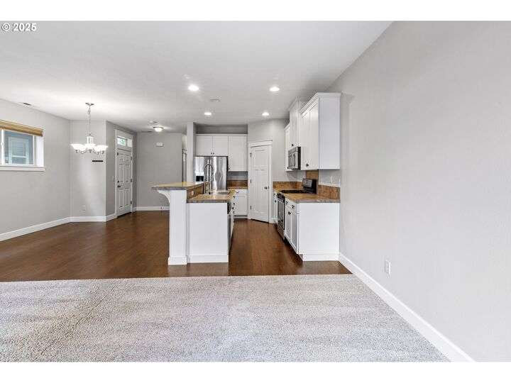 FANTASTIC HOME WITH PRIVACY IN BACK. 3 bedrooms, 2 1/2 bathrooms, 1755 sqft, built in 2013. Engineered hardwood floors and 9’ ceilings on the main level. Large kitchen has an island w/ raised bar, pantry, gas range & stainless appliances and opens to dining area & great room w/ gas fireplace. Vaulted primary bedroom upstairs w/ walk-in closet & glass shower. Bedrooms 2 & 3, a small loft & laundry room are all upstairs too. 2 car garage. High efficiency gas forced air furnace w/AC. New composite deck overlooks storm water retention area, so no neighbors behind the house. Great location near shopping, restaurants & freeway access.