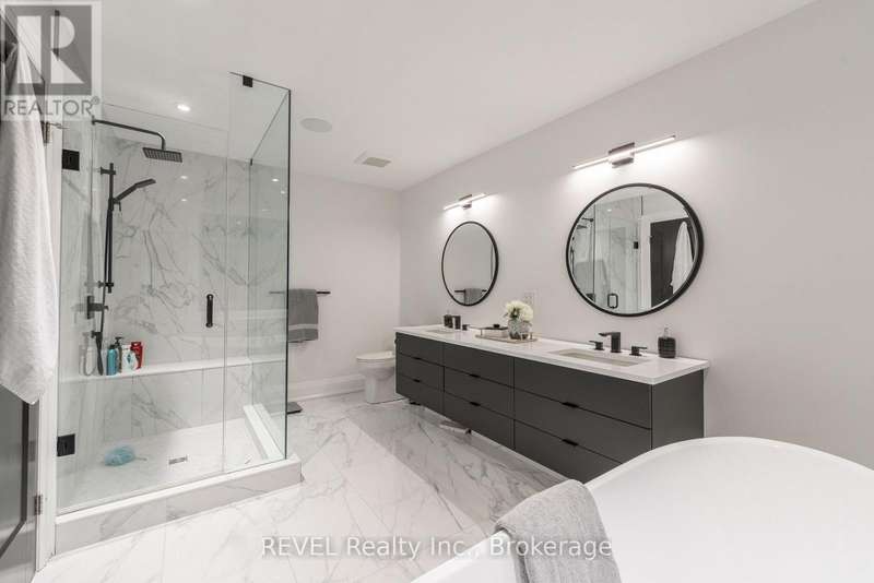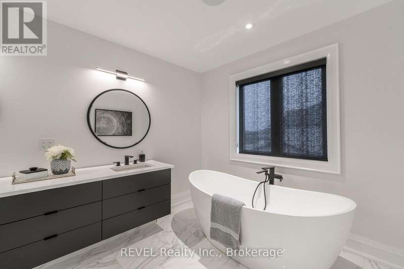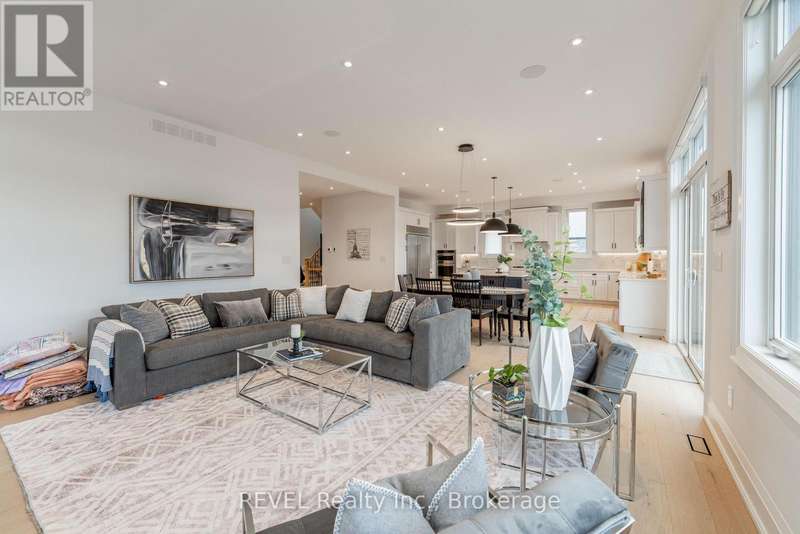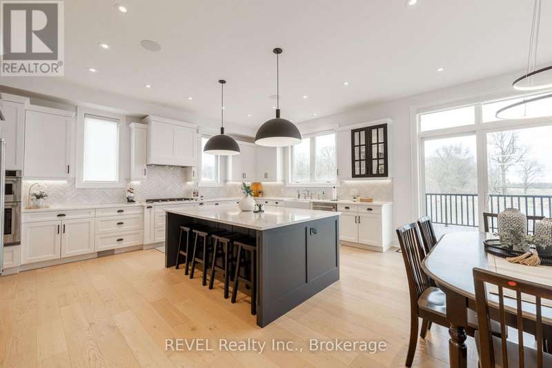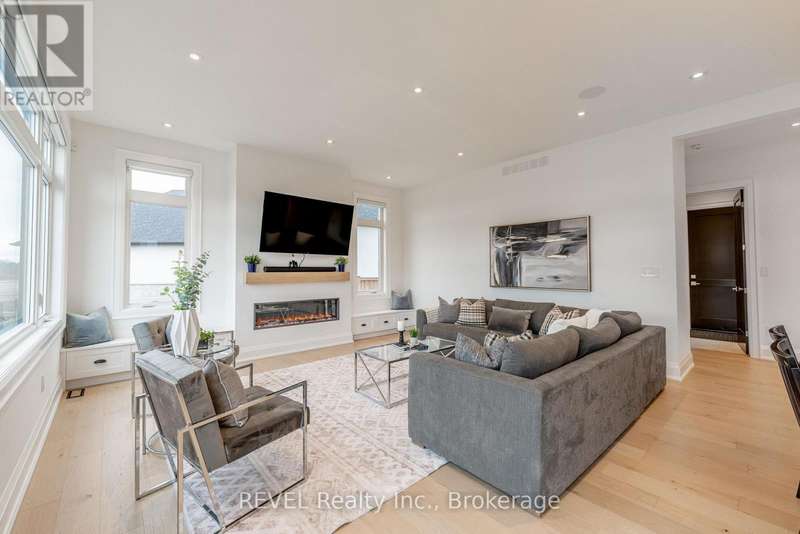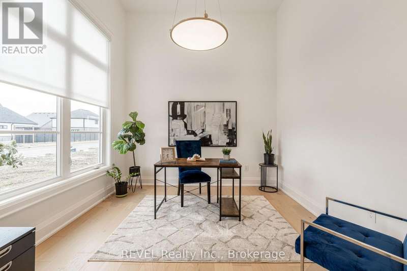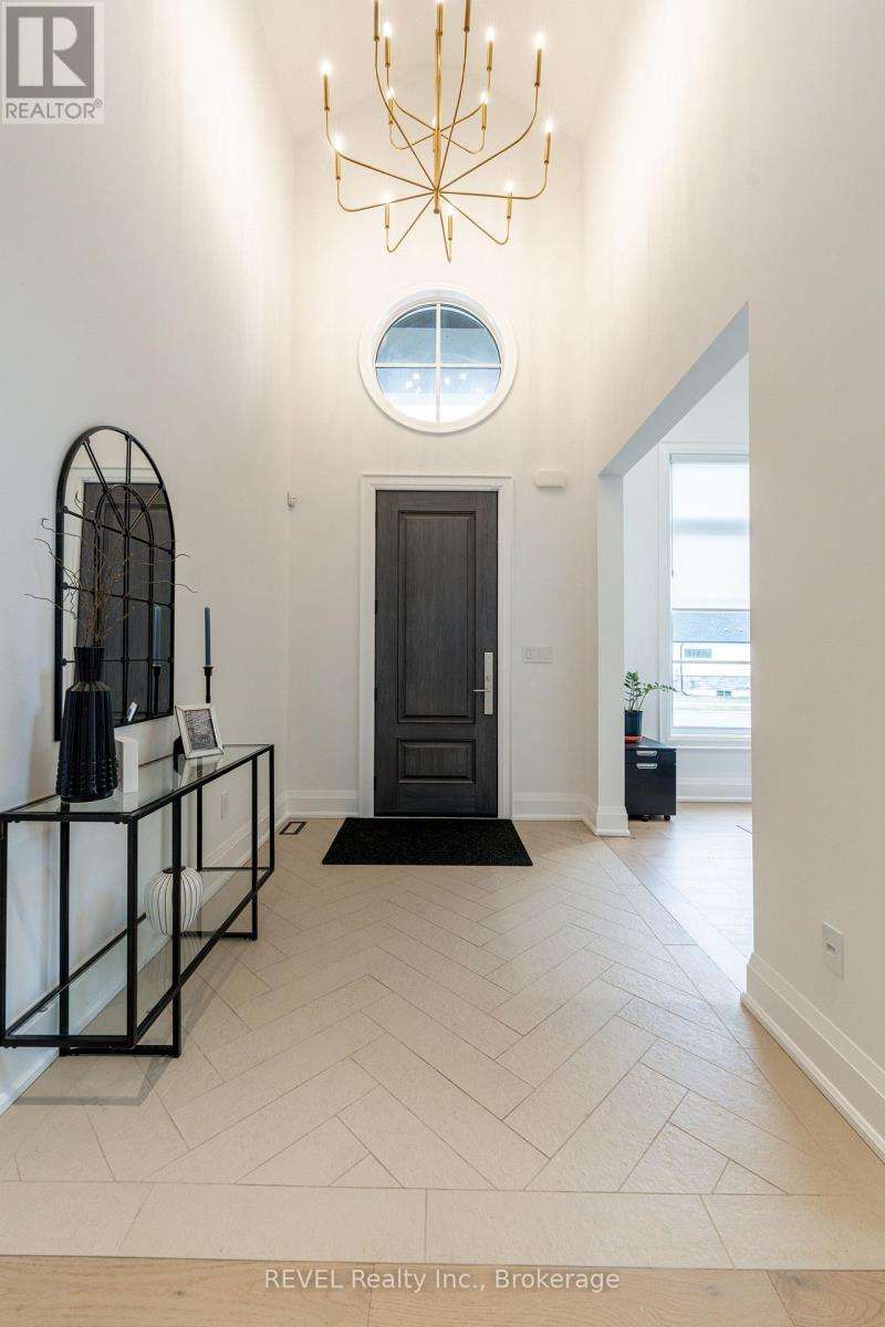 Luxury, style, and modern convenience define this stunning 2-storey stone & stucco home, built in 2022 and backing onto a tranquil retention pond. Thoughtfully designed with high-end finishes, this home boasts engineered hardwood flooring on the main and second floors, soaring ceilings, and oversized windows that flood the space with natural light.The open-concept main floor is perfect for both everyday living and entertaining. The spacious living room features an electric fireplace, while the chefs kitchen is a showstopper with extensive cabinetry, an oversized island with additional storage and seating, built-in appliances, and a striking herringbone backsplash. A butlers pantry with a prep sink adds functionality. A private office, 2-piece bath, and a mudroom with rear yard access complete this level.Upstairs, the primary suite offers dual walk-in closets and a spa-like 5-piece ensuite with a soaker tub and glass shower. Three additional bedrooms provide ample spaceone with a private 3-piece ensuite and walk-in closet, while the other two share a Jack & Jill 5-piece bath. A second-floor laundry room adds convenience.The finished basement (awaiting ceiling completion) features heated floors, a large rec room, oversized windows, and a 3-piece bath. This home is fully equipped with a built-in speaker system inside and out, a security camera system, and a sprinkler system for effortless lawn care.Outside, enjoy the fully fenced pie-shaped lot with a raised composite deck, perfect for entertaining. A oversized 2.5 car garage and a prime location in a growing Niagara Falls subdivision, close to shopping, amenities, and major highways make this home an exceptional opportunity. (id:7434)