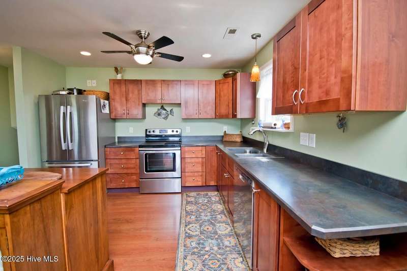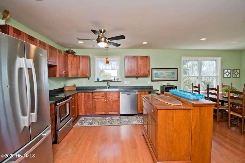 Welcome to your private retreat on the beautiful White Oak River, nestled within the serene, gated community of River Oaks. This charming home sits on a spacious .58-acre lot, offering peaceful privacy, stunning sunset views, and the soothing sounds of nature from your own back porch sanctuary. Avoid dealing with public boat ramps. Put your boat over in your own neighborhood! Enjoy effortless living with a low-maintenance vinyl exterior and durable metal roof, giving you more time to relax and take in the beauty around you. Located just minutes from Emerald Isle's beaches, historic Swansboro, and the conveniences of Jacksonville, this home blends natural tranquility with accessibility. River Oaks offers wonderful amenities, including a community boat ramp and dock for water lovers, a playground and gazebo for family gatherings, and low HOA dues that make this lifestyle even more appealing. Whether you're sipping your morning coffee to the sound of birdsong or watching the sun dip below the horizon over the river, this home is a true escape. Come experience the calm and charm of life on the White Oak River.