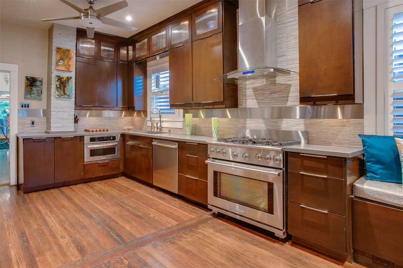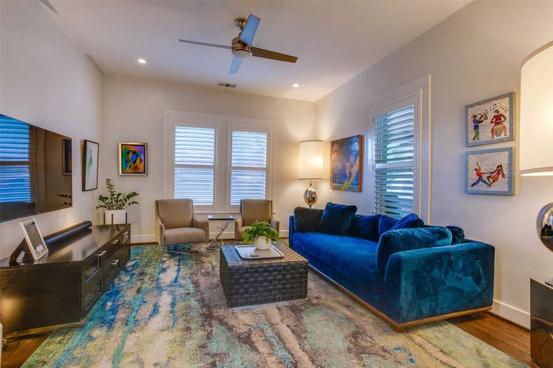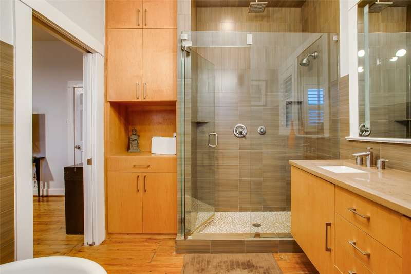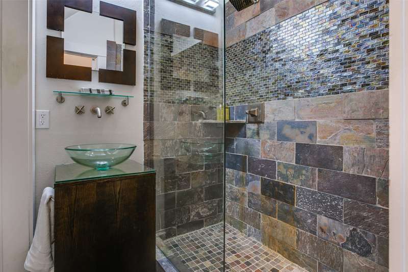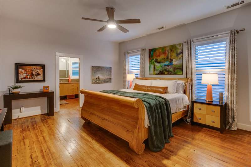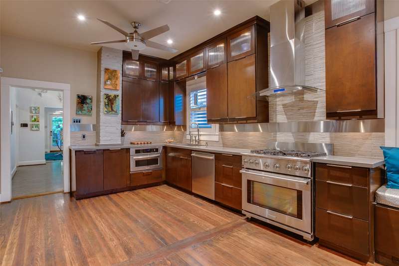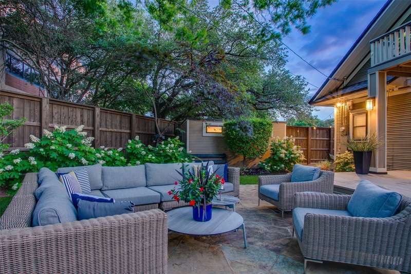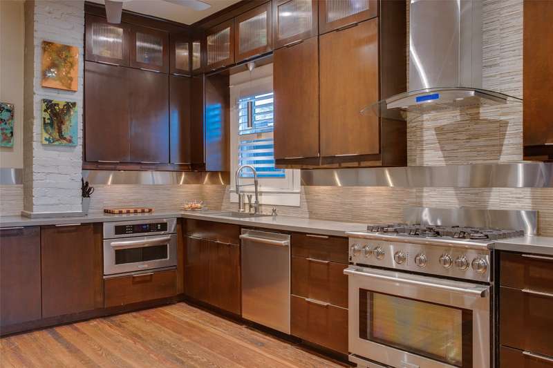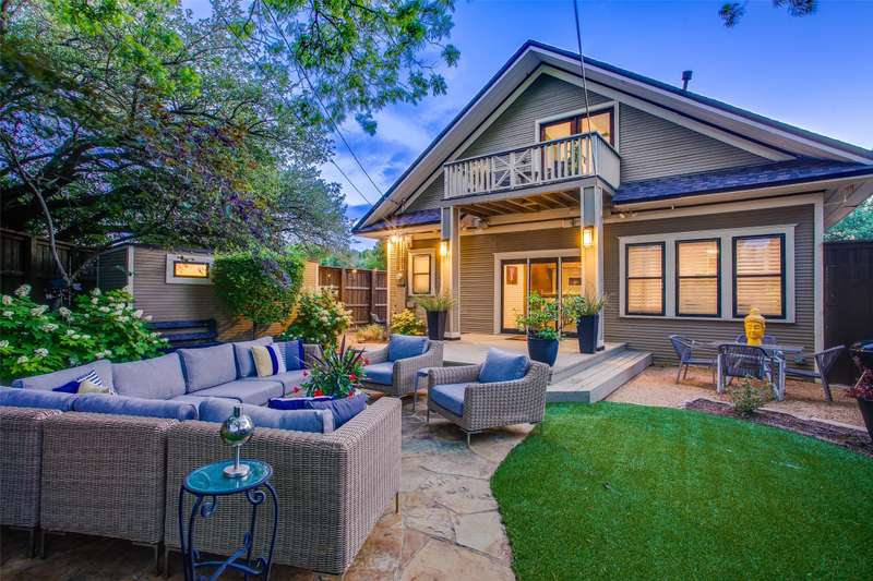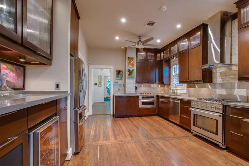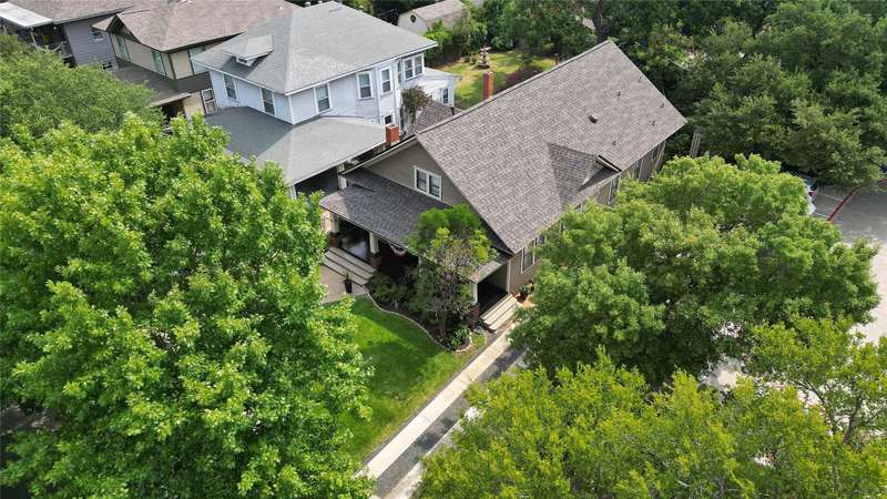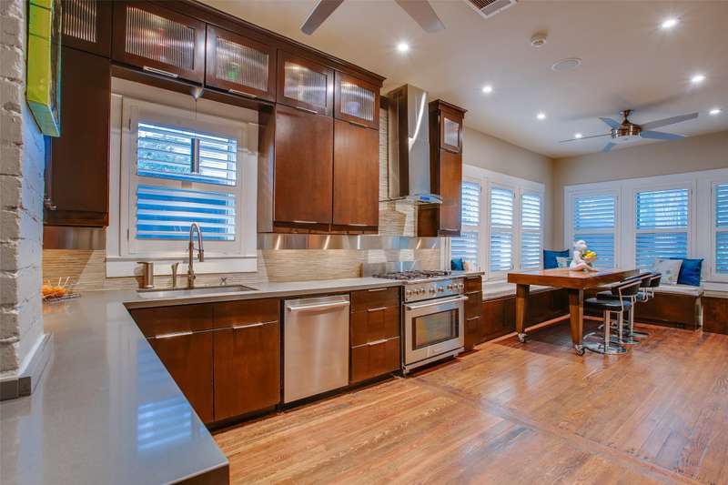 Beautiful Craftsman home with 3 bedrooms, 3 full baths and PRIMARY DOWN in walkable, historic Winnetka Heights. Sited close to Bishop Arts, TYPO, the Kessler Theater, newly completed Kevin Sloan Park, coffee shops and restaurants. Updated and reimagined for modern comfort and effortless entertaining. Step inside to admire an opened interior with stunning plantation shutters throughout. The reception room is highlighted by a custom, eco-friendly fireplace. The luxe kitchen, designed by Orchid Interiors, features custom maple cabinetry to-the-ceiling, fluted glass, a butler's pantry with an auxiliary sink and a built-in bar with Marvel wine fridge, handsome quartz countertops, imported Italian tile with stainless steel accents, dual-fuel 6-burner gas range and a built-in microwave with convection oven. A spacious built-in banquette with storage below anchors the breakfast area along with a 6-person custom table set on industrial casters to roll effortlessly into the kitchen for prepping, serving or hosting. The upstairs loft style suite with a balcony overlooking the backyard offers great flexibility and is currently in use as a relaxing den with a home office area. New roof in March 2025! Smart-home features include app-controlled irrigation and programmable built-in exterior lighting to set the stage for every holiday season with the push of a button! The low maintenance backyard is a knock out with landscaped and lighted flowerbeds, high-end artificial turf, a custom storage shed and long lasting Pro-Seal treated 9-ft privacy fence. See Seller's Disclosure Notice for detailed List of Improvements!
