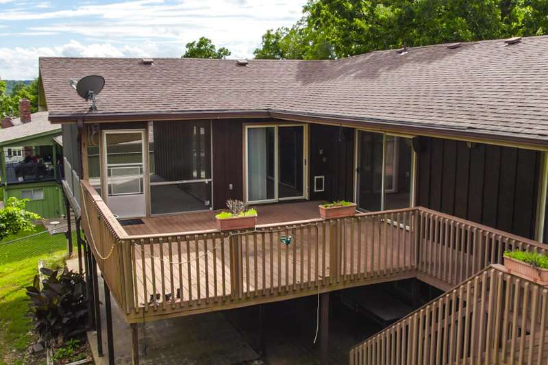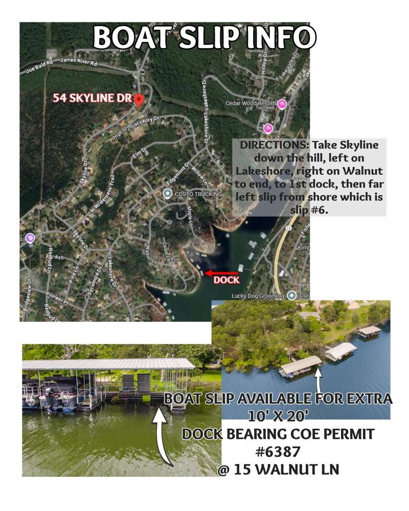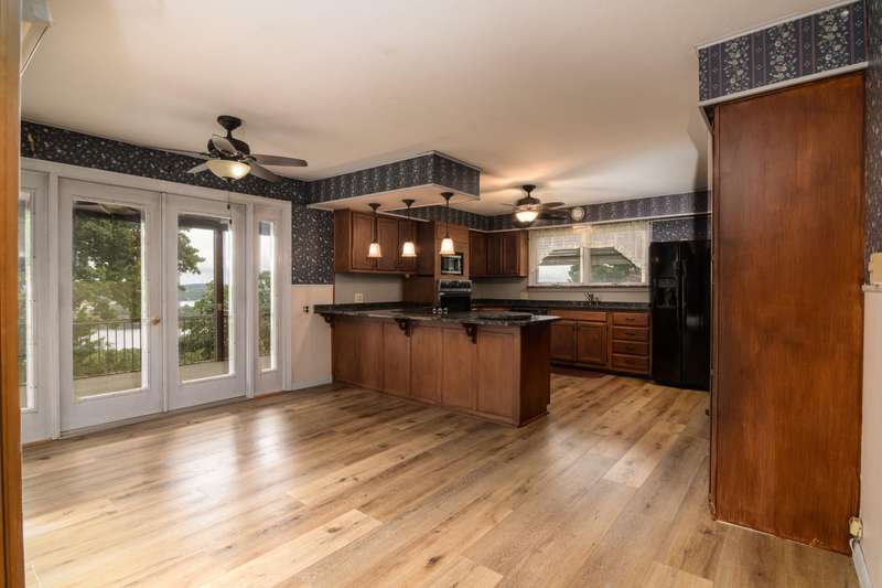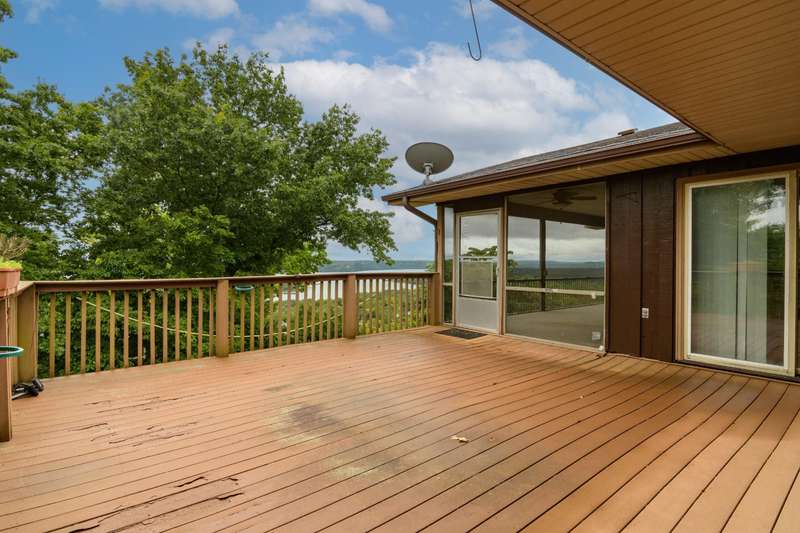 The lake view is OUTSTANDING and that is why you will buy this home! Yes, there is no doubt it will be a project for someone who is not afraid of some work. You can restore this mid-century ranch home into a charming place to call home. Imagine sitting on the deck or inside the screened porch and enjoying the grand view of Table Rock Lake. Plus, down the hill off the end of Walnut Ln is a 10' x 20' boat slip available for an additional $50k. The location is amazing, just off Hwy 13 and close to all the eateries to be found in Kimberling City and convenient to Harter House Grocery for the best meats around the area. There are 2 large bedrooms on the lakeside of the main level along with 2 bathrooms. There are sliding glass doors accessing the deck from each bedroom, the living area and kitchen so you can easily enjoy the view or slip out on the deck for a bigger view of the lake. Downstairs is a bonus room that was used as a dance studio. Many local folks learned tap and other dance moves from a former Rockette who made Kimberling City her home. The current w/d hookups are in the utility/mechanical area in the lower level but there was a time when they were in the kitchen. Let the dreams begin for how you can add your own special touches to this property. Come take a look soon!