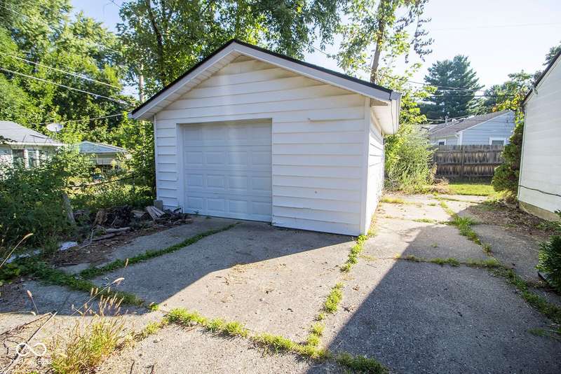 This three-bedroom ranch is the perfect project for an investor, flipper, or buyer ready to add their own touches. The spacious great room welcomes you with updated flooring and an abundance of natural light. The open kitchen comes complete with appliances, overhead lighting, and a convenient laundry closet-all leading out to a large, fully fenced backyard Three generously sized bedrooms share an updated full hall bath. Detached 1-car garage offers additional workshop space and built-in cabinetry for storage. Sitting on one of the larger lots in the neighborhood, this home provides rare privacy and outdoor living space. Conveniently located just minutes from Glendale, Broad Ripple, Clearwater, and several parks and playgrounds. Bring your vision-this property is ready for updates and has the potential to shine!