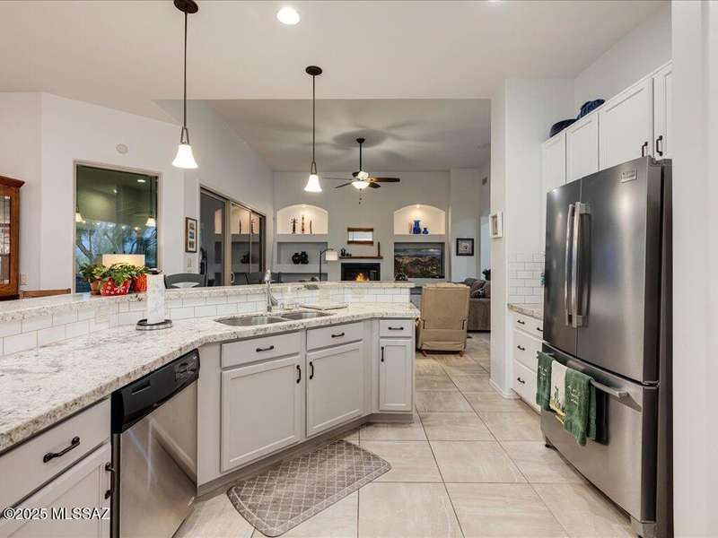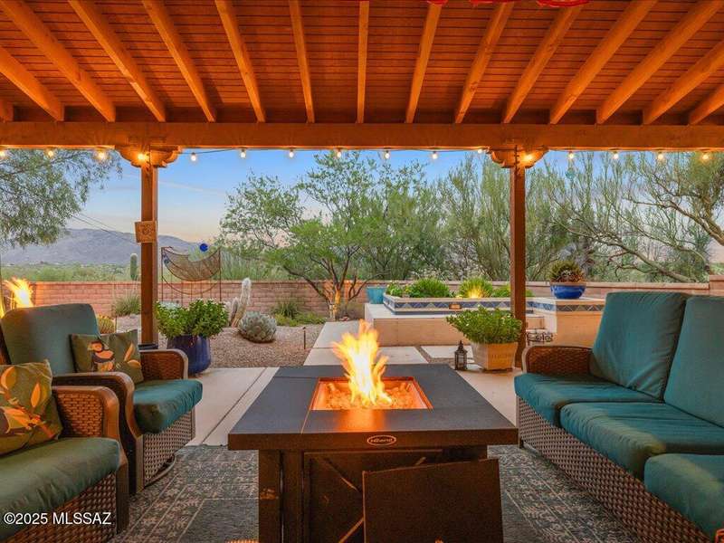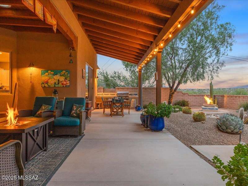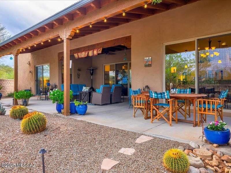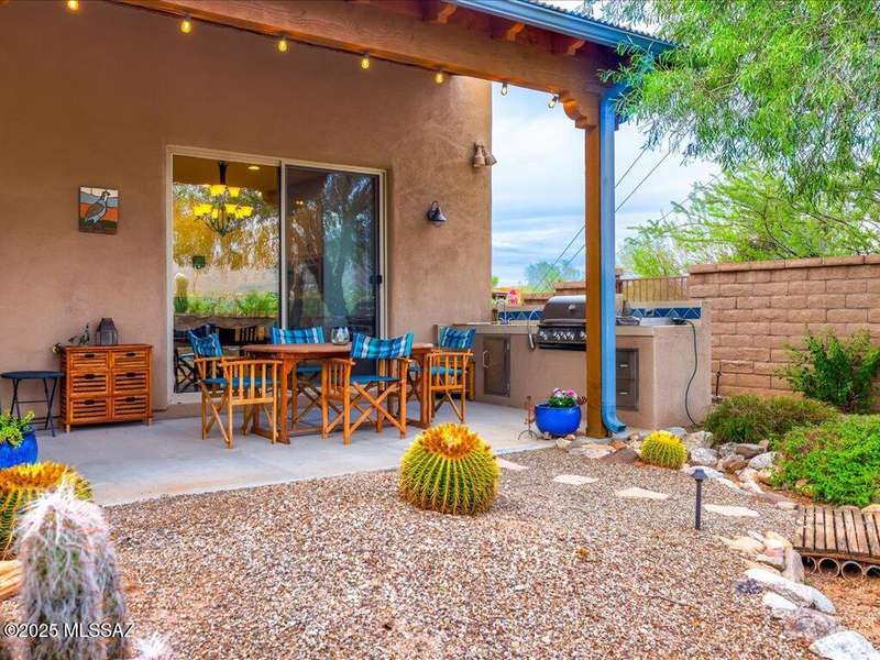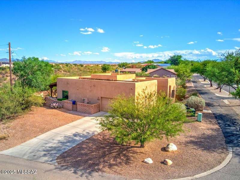 Immaculate 3-bedroom, 2-bath Pepper Viner home in Civano on a huge .45 acre lot with open space and mountain views. Built in 2014 with 2,057 sq. ft., this high-efficiency home features triple-pane windows, spray foam insulation, seven solar tubes, and paid off leased solar panels. Inside, thoughtful design, a remodeled primary bath, natural light and amazing views highlight the home's exceptional qualities. Outdoors, the beautifully landscaped backyard offers a deep extended patio with an outdoor kitchen, 220 hookup for a spa, and room to add on to the home if desired. A rare Civano property offering beauty, efficiency, and endless opportunities for its next owner.
