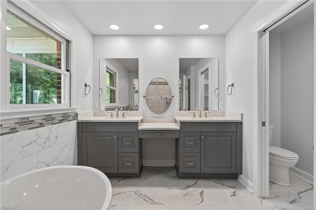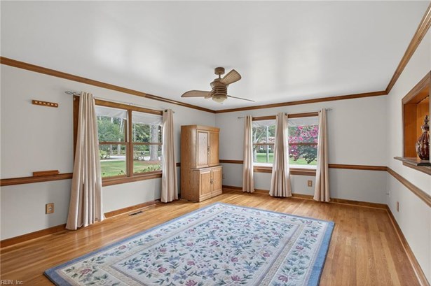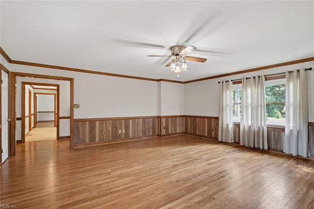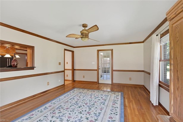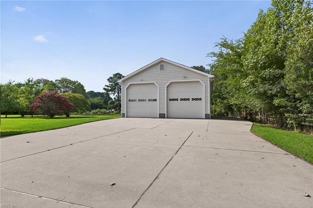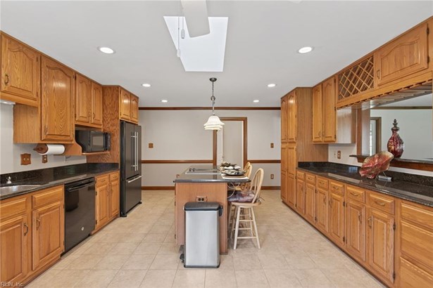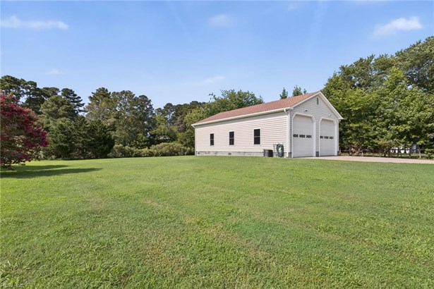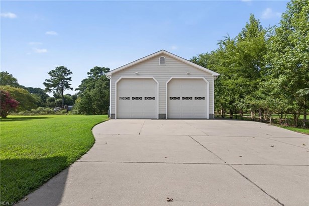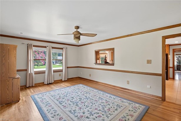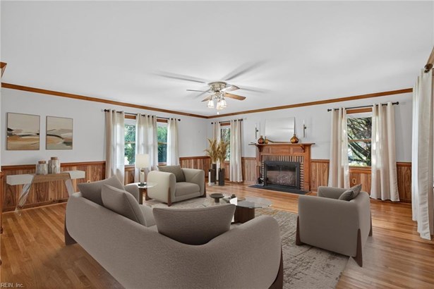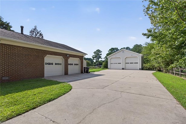 Enjoy all one-level living in this beautifully updated home! The spacious kitchen features granite countertops, a center island, and ceramic tile flooring. Gleaming hardwood floors flow throughout the main living areas, leading to a large family room with a cozy fireplace. The expansive primary suite offers a walk-in closet and a luxurious ensuite bath with dual vanities, a tiled shower, stand-alone soaking tub, and tile flooring. Two additional bedrooms, a dedicated office, and a versatile space off the kitchen—perfect as a second family room or large dining area—offer flexible living. Relax year-round in the heated and cooled sunroom. In addition to the attached 2-car garage, you'll appreciate the detached 2-car garage with oversized doors—ideal for extra storage, workshop space, or larger vehicles (currently housing a 30 ft boat)