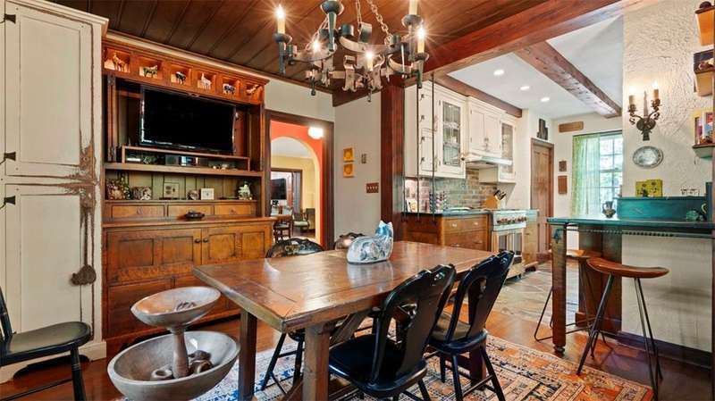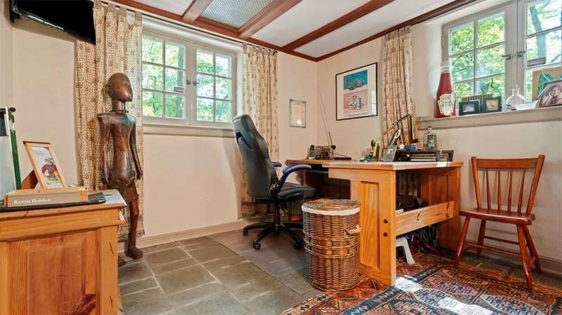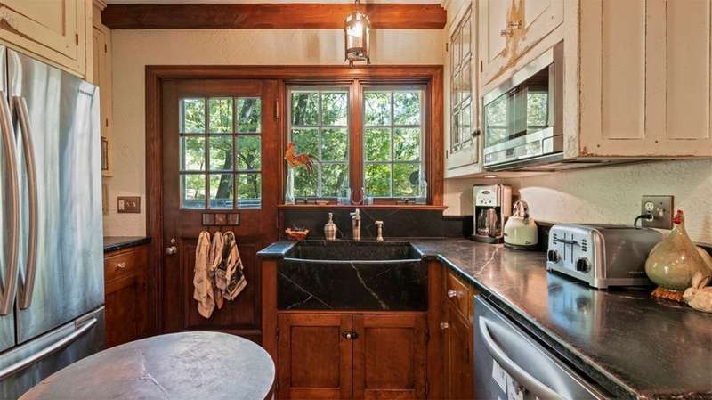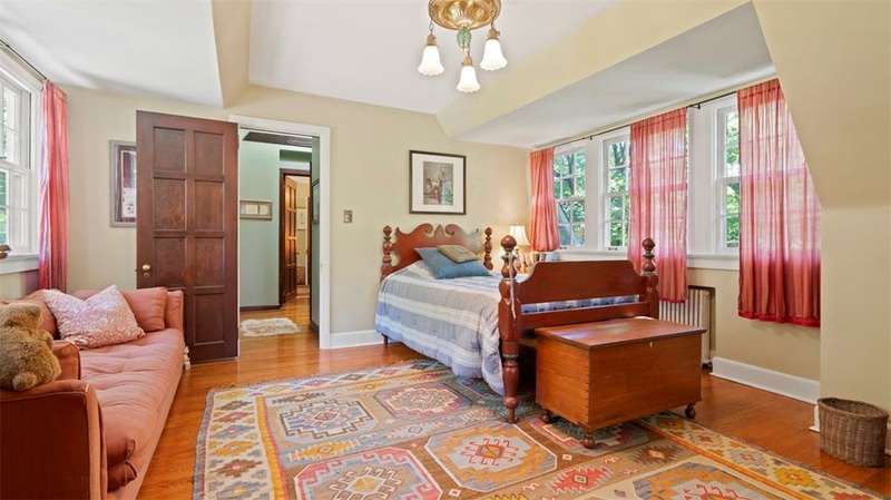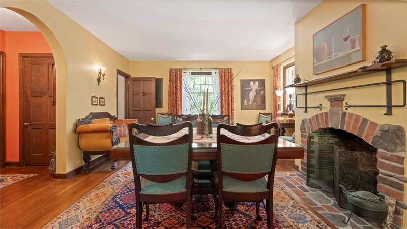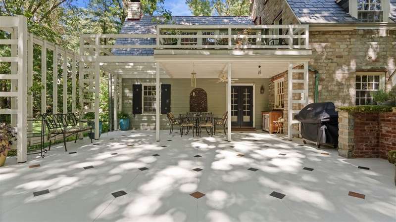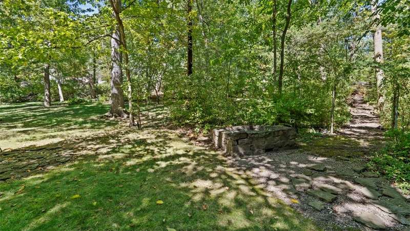 One of a kind treasure in Fox Chapel. Exquisite attention to artistic & historical detail, as the owners lovingly brought this home back to its magnificent origin of 1928: beamed ceilings, built-ins, wrought iron accents, a hidden prohibition bar, original tile window sills. Beautifully remodeled kitchen features custom cabinets, pro appliances, soapstone counters & sink; open to dining area surrounded by birdseye maple cabinetry. A winding staircase connects the LR to the 2nd floor primary suite, with its private rooftop patio. Off the LR is a large partially covered patio with a stone fireplace; overlooking a grassy courtyard surrounded by stone walls, a pond & fountain. The extraordinary private property, accessed by a gated governor's driveway, surrounded by deer fence protecting lovely gardens serviced by a sprinkler system. Naturalized areas include walking paths, a previous chicken coop - playhouse/shed, gas lanterns, outdoor lighting; a creek & waterfall lie below the property.