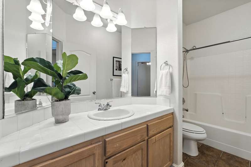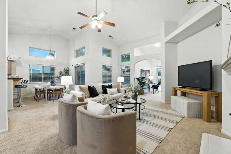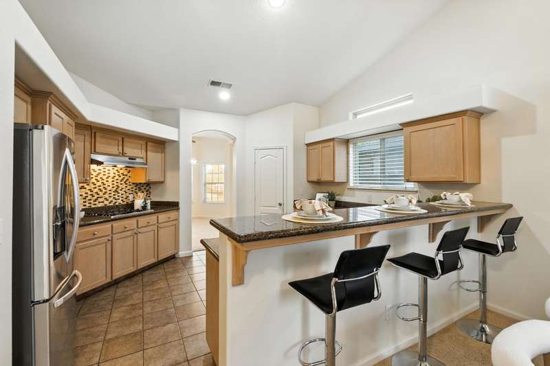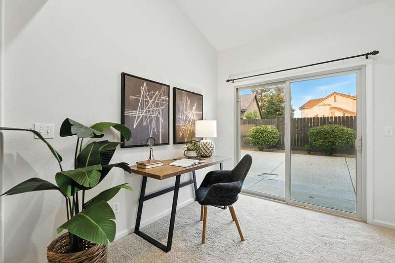 Don't miss this great three bedroom, two bath home! With a Bonus bedroom/office in the garage! As you enter, you'll notice a beautiful step-up tile entryway that leads to the main living room and to a front sitting room/formal dining area. The house has a fantastic layout and flow, with the primary bedroom separated from the other two bedrooms. Just off the primary bedroom is an office/sitting area. The primary bathroom has a large dual vanity counter, and a soaking tub. This property has a two car garage, and a bonus room in the third garage bay. Newer Clovis schools nearby. Restaurants and coffee shop within walking distance. All of these awesome amenities with the washer/dryer and fridge included! There are so many nice features, don't hesitate to set up a showing and come see it today!