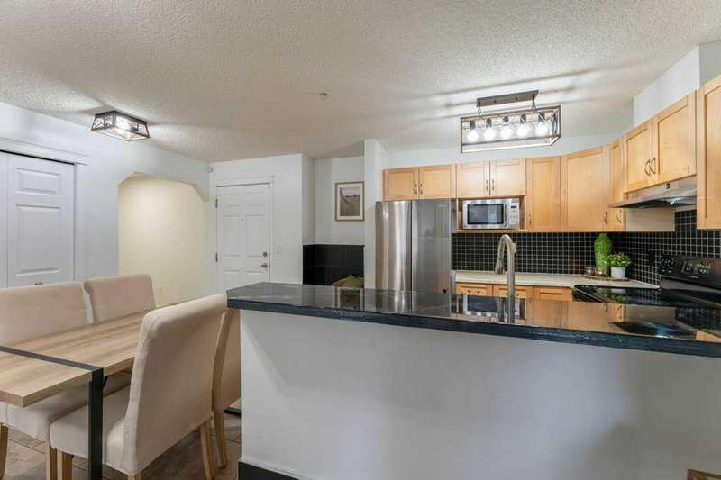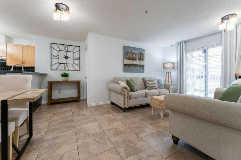 Welcome to this incredible main floor unit in the heart of Panorama Hills! Perfect for first-time homebuyers, empty nesters looking to downsize or investors. This home combines convenience, comfort, and accessibility. Featuring 2 spacious bedrooms, 2 full bathrooms, and in-suite laundry, this unit also offers a den/home office for those who require a dedicated workspace. There’s no carpeting in the condo, making it easy to maintain. Step inside to the immaculate kitchen with new refrigerator and new hood fan, ample cabinet storage, and a raised breakfast bar for casual dining. All walls were painted 2 years ago, and the light fixtures are new. The living room opens through glass sliding doors to a cozy patio with a BBQ gas line installed and complemented by new blinds. The primary bedroom includes a walk-in closet leading to a private ensuite, creating a relaxing retreat. A titled parking stall and storage locker are conveniently located on the heated underground secured parkade level. Situated in the established community of Panorama Hills, you’ll enjoy an unbeatable location with shopping, restaurants, groceries, movie theater, schools, public transit, recreation centers, parks, ponds and even a golf course—all just minutes away. Don’t miss the opportunity to make this wonderful condo your new home! Schedule your private tour today.