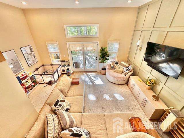 This Beautiful 2 bed 2.5 Bath Townhouse in Holmdel's Fox Chase has a Contemporary Feel with overlook to lower level with open layout*New Kitchen with Quartz Counter,Stainless Steel Appliances,Grey cabinets contrast the Tile Floor perfectly with a hexagon marble Backsplash*Spacious Family Rm with High ceiling,New Accent Wall with Box Molding,Vinyl Floor and the Large rectangular Window baths the room in sunlight*Sliders to Trex Deck facing the privacy of Trees*Upper Level has 2 Large Bedrooms-vinyl floors,recessed lights- each with it's own Bath*Master redone with custom tile,Dual sink quartz Vanity,Brass Fixtures*Plenty of Open Parking for Guests next to open grassy common area*Great Location between rt 35 and 36 and just minutes to GSP and Beaches