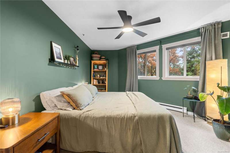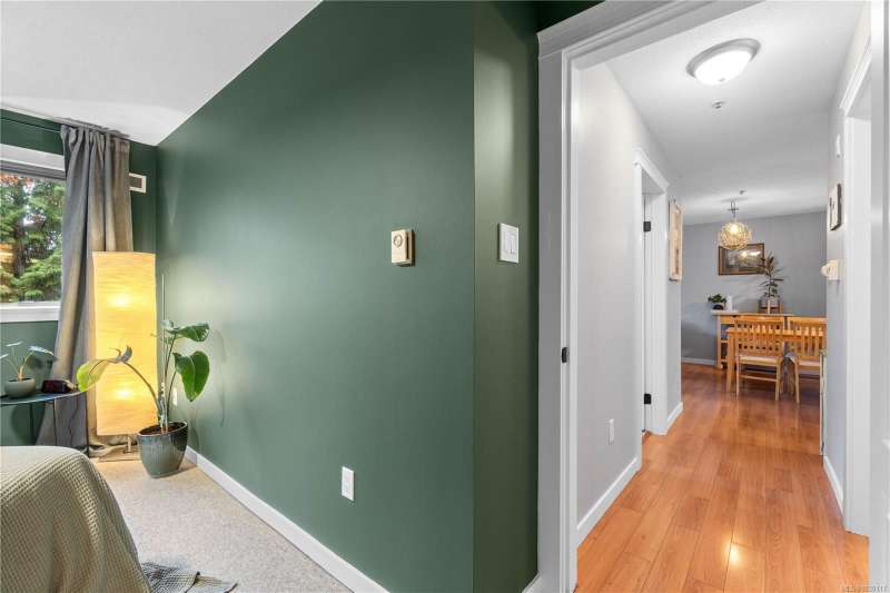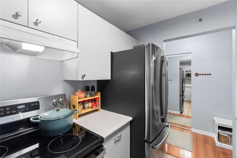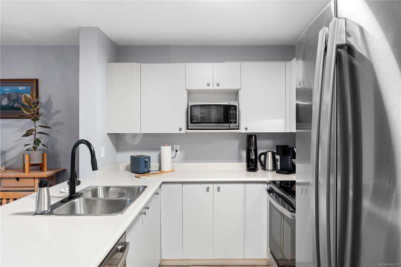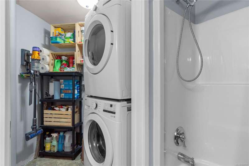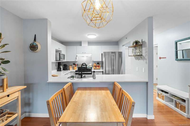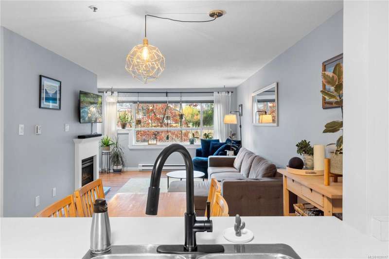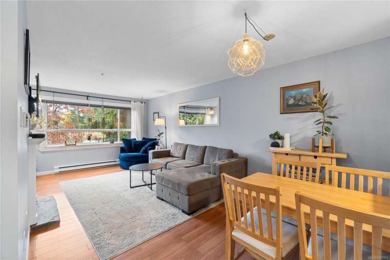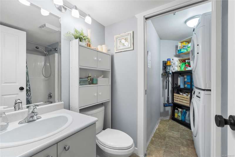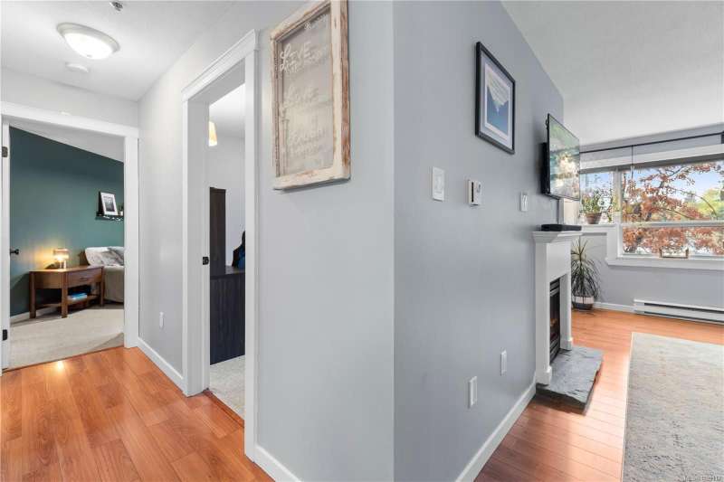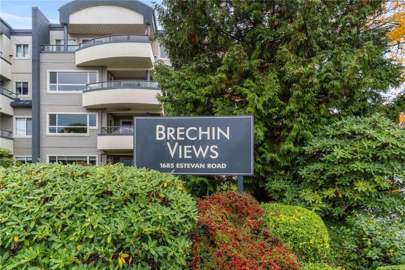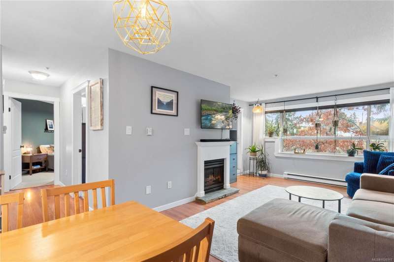 Bright and welcoming 2 bed, 2 bath condo in the well-managed Brechin Views. This updated third-floor unit features modern laminate floors, soft neutral tones, and voice-controlled lighting. The kitchen offers plenty of storage, new appliances and opens to the dining and living area with a cozy gas fireplace. Enjoy the spacious covered deck with access from both the living room and second bedroom. The primary bedroom includes multiple closets and a 4-pc ensuite. Additional perks: in-suite laundry/storage, underground parking, storage locker, and bike storage. Convenient location steps to shopping, the waterfront, and ferry terminals, with quick access to downtown or North Nanaimo. Strata fee includes gas and hot water. One small dog or two cats allowed. All measurements approx.