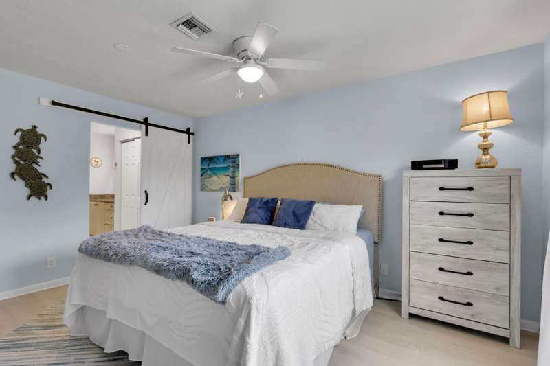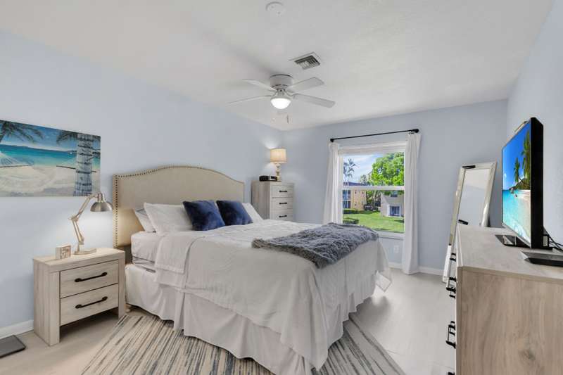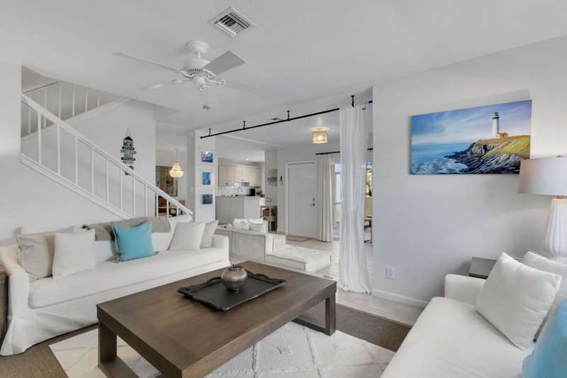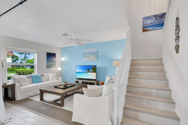 Sensational Location, Short Walk to Beautiful Carlin Park, Endless Beach and Popular Local Restaurants. This 3 Bedroom Home Features an Open Concept Floor Plan with Designer Touches and Numerous Upgrades Like New LV Flooring, New Impact Windows, Modern Furnishings and More. Primary Suite with King Size Bed & En-Suite Bath, 2nd Bedroom Holds a Queen Size Bed & 3rd a Daybed. Step Through Sliders Lead to a Spacious Patio with Plenty of Space for Outdoor Dining & Entertaining. Luxury Florida Living with Community Amenities That Include Both Tennis & Oversized Pool.