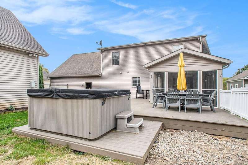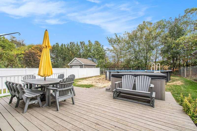 Welcome home to this beautifully maintained 3-bedroom, 3.5-bath residence in Edwardsburg. The main floor primary suite offers comfort and convenience, while the upper level features two additional bedrooms and a full bath. The finished basement provides excellent additional living space complete with a bar, family room, and full bath-ideal for entertaining or relaxing. Enjoy outdoor living with an above-ground pool, hot tub, and a beautiful 11x14 three-season room. The property also features an attached 2-car garage plus a detached 3-car garage with a finished 31x11 hangout area above-great for hobbies, guests, or extra storage. Located just 30 minutes from South Bend, IN, and 15 minutes from Elkhart, IN, and only minutes from Christiana Creek - Redfield-Bucklen Landing Boat Launch. Contact me today to schedule your private showing!