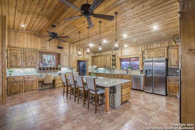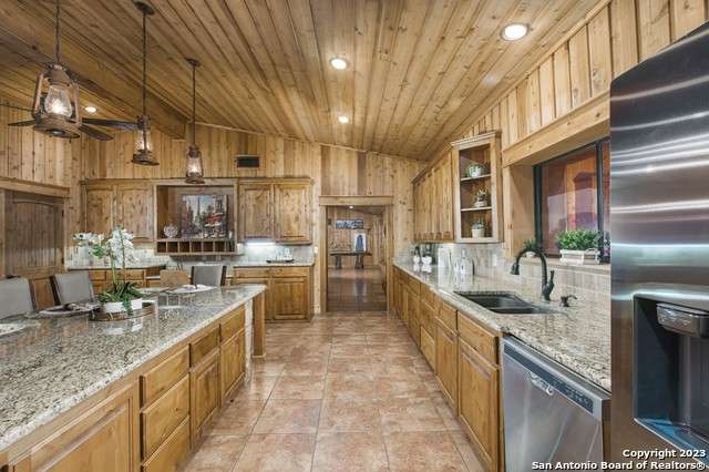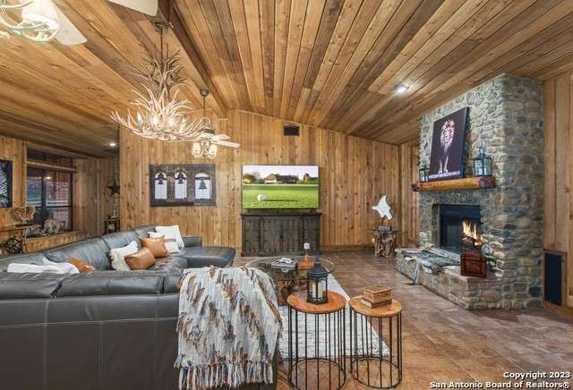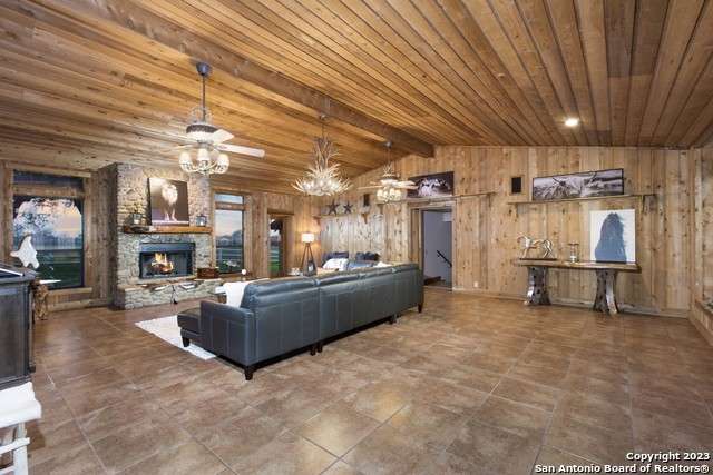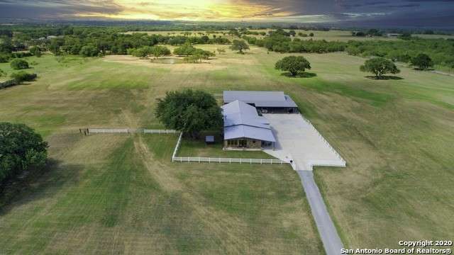 Seller Financing Available! Discover 26 acres of breathtaking open land adorned with vibrant bluebonnets, a tranquil pond, and majestic oak trees that create a serene and picturesque setting. This exceptional 3-bedroom, 4-bathroom home offers 3,952 sq. ft. of living space, complemented by an 800 sq. ft. man cave and a detached 12-car garage. The heart of the home-the classic country-style kitchen and family room-exudes rustic charm with exposed beams, custom cabinetry, cedar walls, tile floors, and a stunning stone hearth.