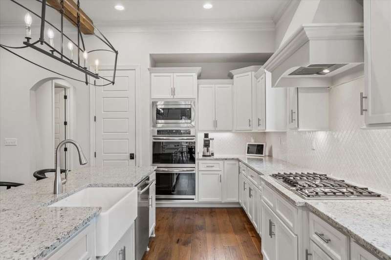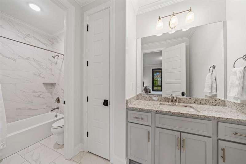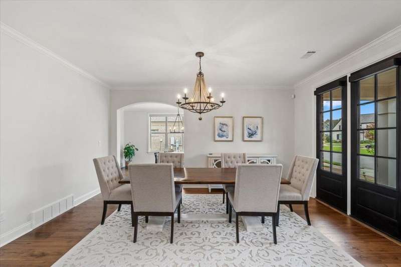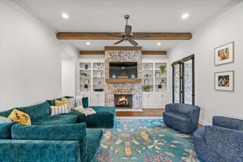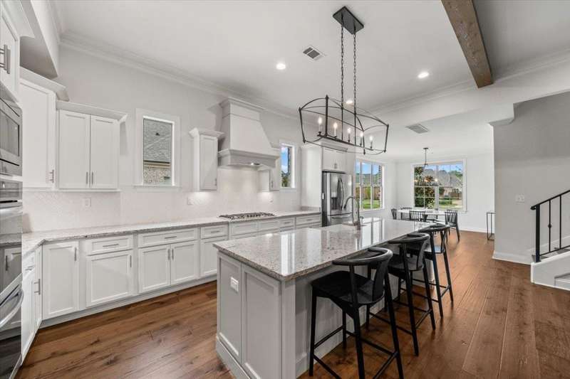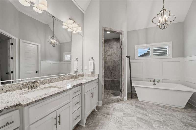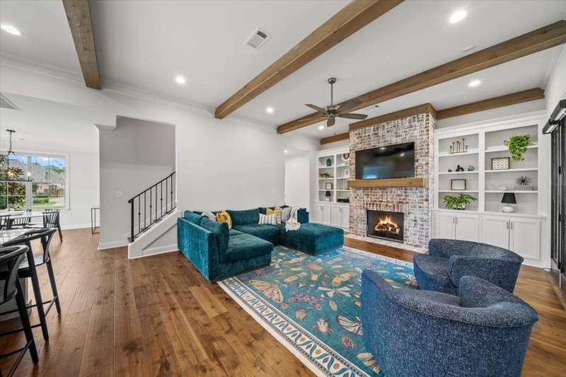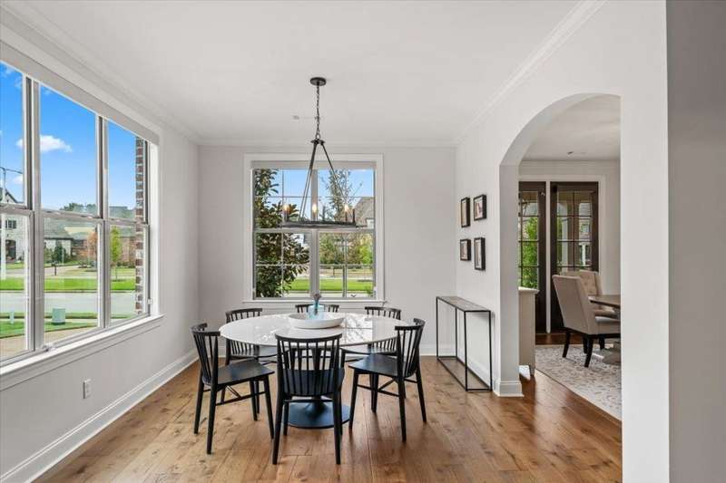 Refined luxury meets timeless design in this exceptional home featuring 2 bedrooms on the main level with open floor plan and beautiful hardwood floors perfect for entertaining. Upstairs you will find 3 additional bedrooms, complemented by a spacious bonus room and a future optional media room. Every detail has been thoughtfully curated ? from the farmhouse sink and designer lighting to custom cabinetry and exquisite stone countertops. Premium finishes continue with Pella windows, James Hardie siding and trim, and hand-selected brick accents. Enjoy elevated outdoor living on expansive covered porches at both the front and rear, blending sophistication and comfort in every space.