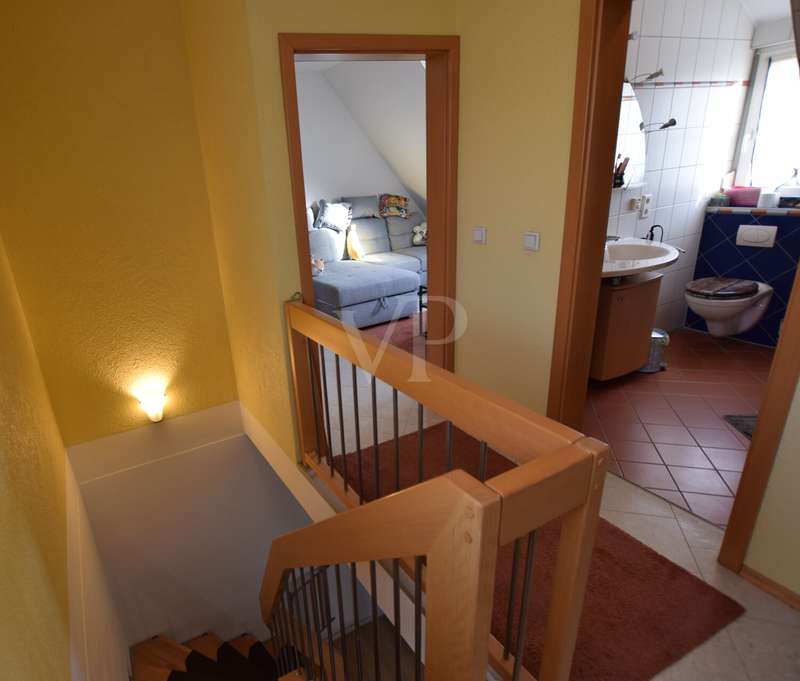 This modernized end-terrace house built in 1955 impresses with a generous living space of approx. 124 m² on a plot of approx. 450 m². The top floor of the terraced house was extended in 2001 and has been further modernized over the years. The successful combination of classic existing architecture and contemporary modernization creates a home that is both functional and inviting. On the first floor, you enter the house via a spacious hallway. From here, you enter the dining area with fitted kitchen, which creates a special atmosphere thanks to the high ceilings and large windows. Light-flooded rooms ensure a pleasant feeling of space at any time of day. The adjoining fitted kitchen is included in the purchase price and combines modern design with user-oriented equipment - an ideal place for culinary creativity. The space on offer comprises a total of four rooms, including a well-proportioned bedroom and a children's room on the upper floor, as well as a spacious living room on the first floor. From the living room, you can access the upper floor and the covered terrace. The two bathrooms, each with natural light, are stylish and modern. They have both a shower and a bathtub as well as pleasant underfloor heating. Particularly noteworthy is the practical floor plan, which allows for a variety of uses. The outdoor area underlines the attractiveness of this house: The small garden in the inner courtyard offers you a sheltered place to relax. The property also has a small front garden in front of the house. A covered terrace in the inner courtyard and a second terrace in the front garden area are available for relaxing hours outdoors. A cistern in the garden ensures sustainable irrigation. The spacious double garage offers plenty of space for your vehicles and additional storage space. The house is technically up to date: the oil central heating dates from 2013 and ensures efficient heating. The electrics were supplemented with a new switch cabinet in 2025, and a new side entrance door was also installed in the same year. These measures ensure long-term living quality and security. The fixtures and fittings are of a contemporary, standard quality and offer everything you need for comfortable living. Particularly noteworthy are the light-flooded rooms, the fitted kitchen, the high ceilings in the living and dining room, the two daylight bathrooms with shower and bathtub and the two double garages. This property will inspire you. See the quality of this property for yourself at a personal viewing appointment on site. We look forward to seeing you and will be happy to answer any questions you may have. Arrange your individual appointment today and discover your new home!