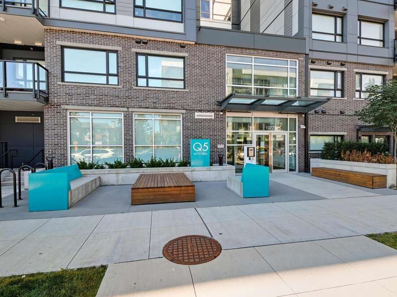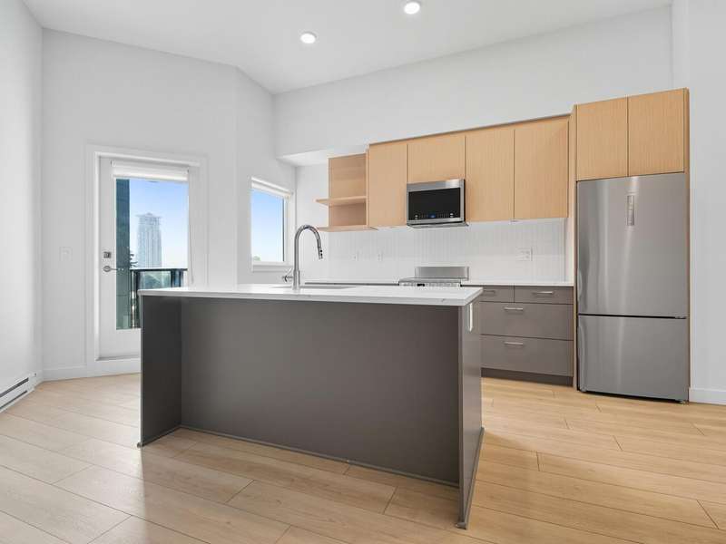 Penthouse!! 11 feet ceiling 1-Bedroom in Q5 - Designed for Contemporary Living. Welcome to your new home at Q5, a vibrant and meticulously planned community where comfort meets convenience. This brand-new 1-bedroom unit features 8-foot ceilings and expansive windows, creating a bright and airy ambiance throughout. The designer kitchen is a standout, boasting stainless steel appliances, quartz countertops, LED flush-mount lighting, and a stylish blend of wood grain and solid color cabinetry. Wide plank flooring and soaring ceilings elevate the modern aesthetic, sleek and sophisticated living space. Residents enjoy a comprehensive range of amenities, including: EV pre-wired parking, gym and yoga room, cozy fireside lounge, community gardens and close George Skytrain Station Parking & Storage (id:58403)