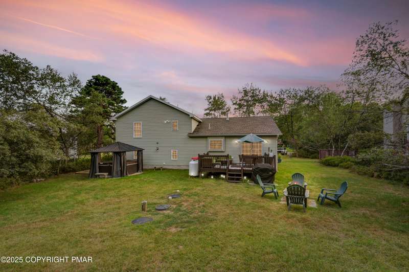 Welcome to this spacious three-bedroom, two-bath home set on nearly half an acre in the desirable Emerald Lakes community. Designed for both comfort and convenience, the property features a relaxing hot tub and fire pit, ideal for entertaining or unwinding after a long day. Residents of Emerald Lakes enjoy a wide range of community amenities, including indoor and outdoor swimming pools, private lakes with sandy beaches, a clubhouse with bar and grill, and year-round recreational opportunities. Whether you are seeking a vacation retreat, primary residence, or income-producing property, this home presents a versatile opportunity. Located in the heart of the Poconos and situated close to Kalahari, Camelback Mountain, Jack Frost-Big Boulder, Hickory Run State Park and the Delaware Water Gap National Recreation Area. Visit historic sites, find adventure tours, and enjoy dining and shopping. Quick access to Routes 80, 380, 940, and 314 making travel to New York City or Philadelphia convenient and efficient. Schedule a private showing today and experience all that this home and community have to offer.