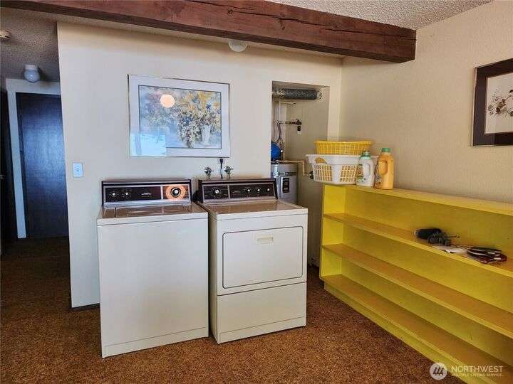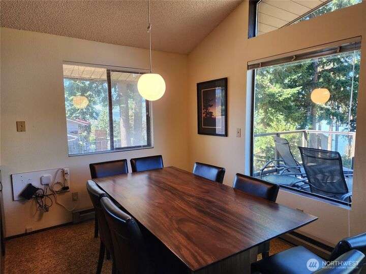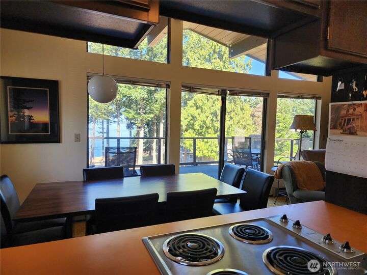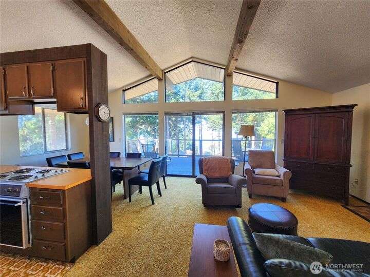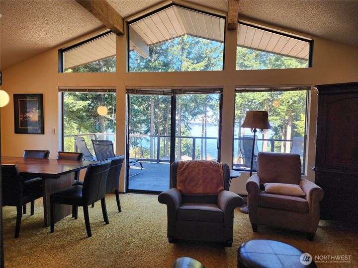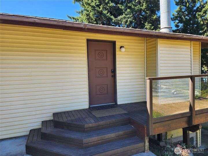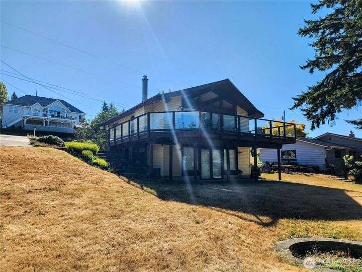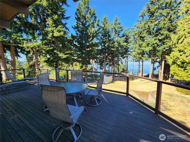 Beautifully furnished 2 bedroom, 2-bath home in the sought-after Madrona community. Just a short stroll down the community trail leads you to the beach. Main level offers an open-concept living space with vaulted ceilings, cozy fireplace, and large windows framing treetop and water views. Two bedrooms are on the main floor, with two additional furnished rooms downstairs, featuring 2 king beds and 3 bunk beds for versatile sleeping arrangements. Enjoy a fully equipped kitchen, spacious dining area, and expansive deck for outdoor dining or relaxation. Basement includes a rec room w/ping pong table, laundry, and extra living space. large lot with ample parking and private yard, this home is perfect for a comfortable, turnkey coastal lifestyle