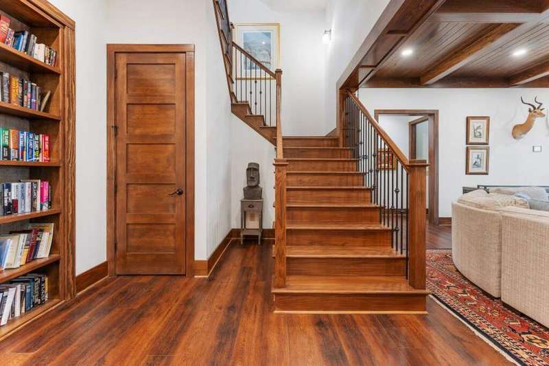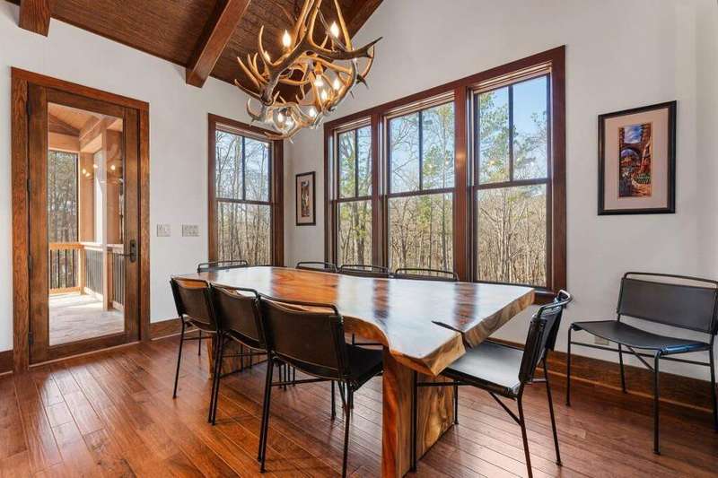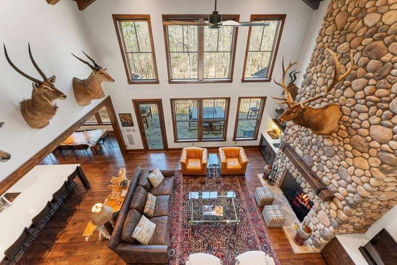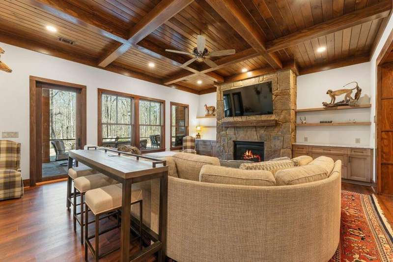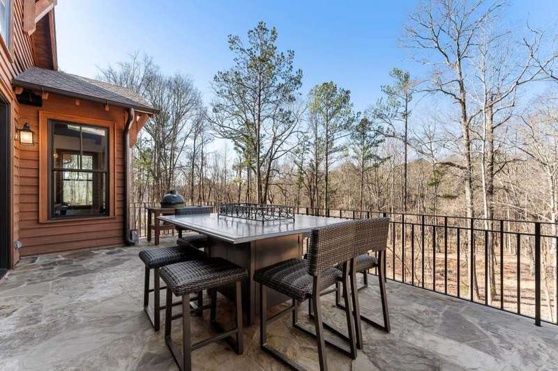 Peaceful living on acreage! Do not miss this special property...the ultimate cabin sold FURNISHED! A short drive south of Atlanta is the getaway you need in your life..."Knotty Oak" Cabin in the beautiful, private sporting community of Blalock Lakes! Recently built, this stunning home is located on over 5 acres of wooded land with serene lake views, private fenced in pickleball court, and room to roam. Being sold fully furnished, this home has a dreamy entrance with meandering drive to the most charming cabin with 3 car garage with 1 bedroom carriage house with balcony and breezeway to 5 bedroom main house. Full of natural light, this pristine home is equipped with custom, luxury chef's kitchen with wolf and subzero appliances, huge island, and views to massive family room with impressive floor to ceiling stone masonry fireplace. Screened in fireside porch off kitchen perfect for morning coffee and large open deck off living for outdoor dining and grilling on the green egg. Handsome wet bar in great room and stairs to loft area with game table perfect for poker or mahjong! Primary suite with soaking tub and door to porch on main, gracious secondary bedrooms on main and on terrace level. Terrace level boasts 3 bedrooms, bar, a cozy fireside den and screened porch that leads you to large stone patio for gathering around the fire pit. Terrace also has ATV garage. For all of your adventures, the breezeway has a large outdoor boot wash. Main level has incredible hunt room/mudrooom with several cubbies and gun cleaning table. Laundry room has ample custom cabinetry Speed Queen washer/dryer. The garage is equipped with two 220 volt plugs for EV, heated and cooled with TV, 2 half baths, and storage for event tables and chairs for large group entertaining. Truly the best house to gather, escape, entertain, and enjoy fun with family and friends. Blalock Lakes Sporting Club membership is optional, invitation only, and can be joined separately to enjoy the finest amenitities - fishing, horseback riding, hunting, shooting, hiking, and swimming. Don't miss this special opportunity minutes from downtown Newnan and a short drive to Atlanta!