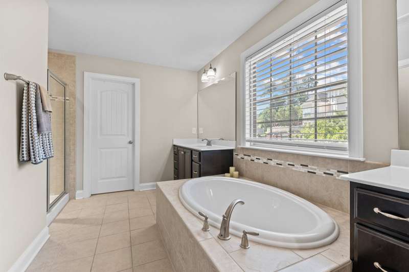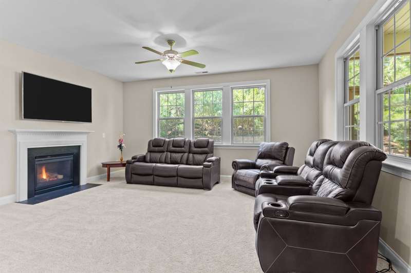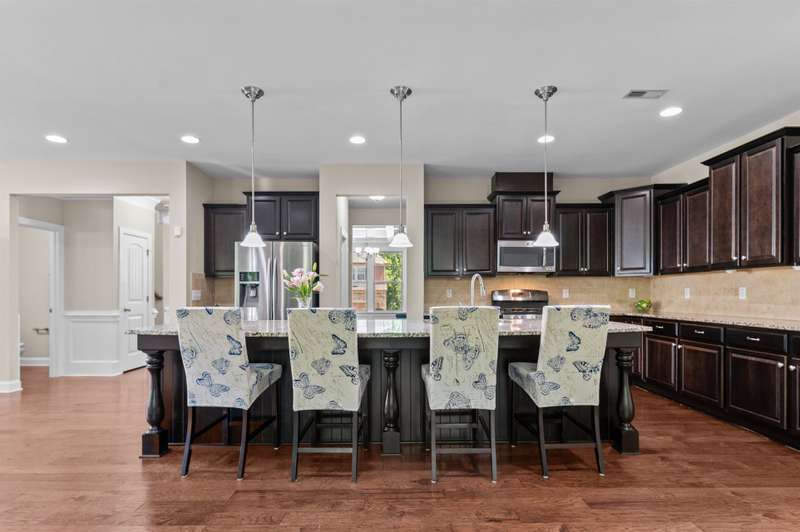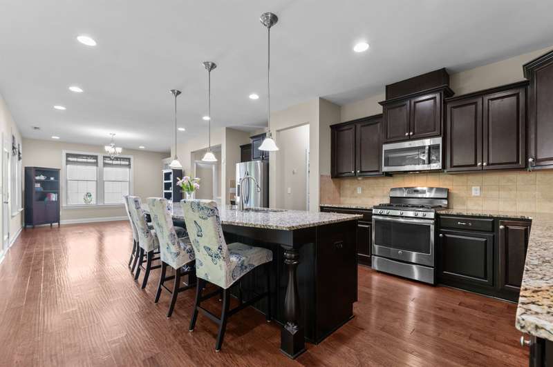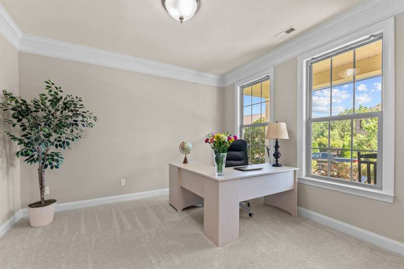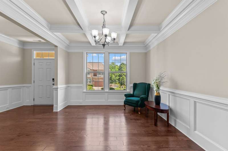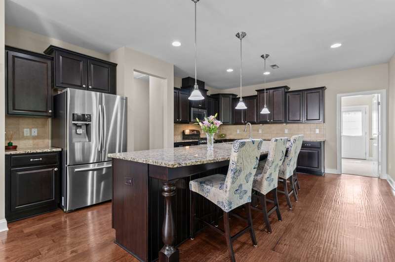 Spectacular layout in this Beautiful Home with elegant appointments at every turn! The Rocking Chair Front Porch welcomes you into this Elegant entry hall accented by wainscoting on either side and into the formal Dining Room with impressive Coffered ceiling and butler's pantry for entertaining! Private study with French Doors, can be easily transformed to your tranquil library retreat or Home office that accommodates client visits. Sunlight pours into both spaces flanking the entry and leading into the huge welcoming Breakfast Room with built in shelves and a view into the screened porch and grilling patio. Adjoining the Breakfast Room is the AMAZING Kitchen you've Always dreamed of! 12 Foot Island easily seats 6-8 and two walls are lined with an abundance of cabinetry and granite countertops making gatherings large and small a breeze! All Stainless appliances including the Refrigerator convey. Farm sink overlooks Island into the adjoining window lined family room with gas log FP. And conveniently located is a highly desirable first floor Bedroom with Full Bath and Separate entrance for multi generational living or work from home office space. So many possibilities! Plus, Fresh paint and new carpet throughout the interior make this home feel fresh and new! Primary Suite upstairs is a true Retreat with a luxurious and spacious spa like bathroom with split vanities, soaking tub, separate shower, and huge walk in closet! Bonus Room with doors and 3 additional bedrooms plus laundry room accommodates everyone while still feeling cozy and intimate!! This home is better than new and Move In Ready! And Seller will provide a one year home warranty! Plus, the fabulous community pool and clubhouse is just a short walk away, where you will enjoy the luxurious swimming pool with a waterslide, Tots pool, pickleball and tennis courts, grilling station, playground, and the clubhouse!