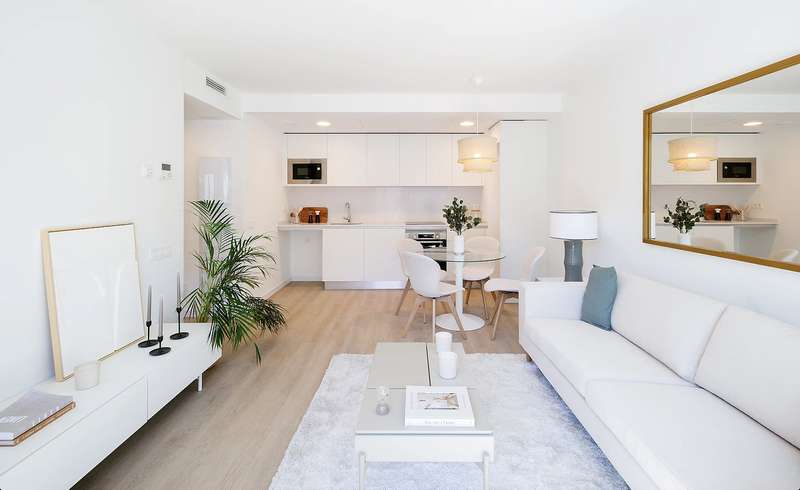 The apartment features a modern closed-plan kitchen with fully equipped appliances, a shower cabin, an en-suite bathroom, a balcony, a satellite TV system, and a spacious dressing room. Designed with energy efficiency in mind, the project stands out for Terrassa's blend of social amenities and natural surroundings, offering a lifestyle connected to both community and nature.