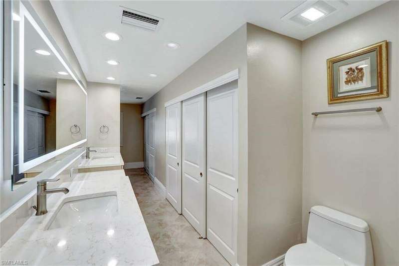 A BOATER'S HAVEN!! Includes an assigned 26 Foot Boat Slip with a 10,000 lb. Lift - no bridges to Gulf and just 4 steps off Lanai to your boat This completely renovated 1.5 bdrm./2 bath condo is a truly must see for the most discerning buyer. Some upgrades and renovations include, porcelain tile flooring throughout, impact resistant windows and door, Quartz countertops with full size backsplash, superior full wall cabinets with pull-outs and lazy susan, quartz kitchen island with cabinets and overhead fan, newer upgraded stainless steel appliances, plantation shutters on all windows, expansive master bedroom offers 20 feet of closet space. Both bathrooms have been exquisitely refinished, and the list goes on and on. A complete list of improvements and upgrades can be provided. Location is everything and you are a mile from downtown, beaches and all that Naples has to offer.