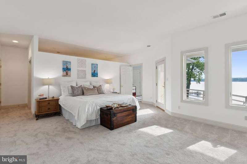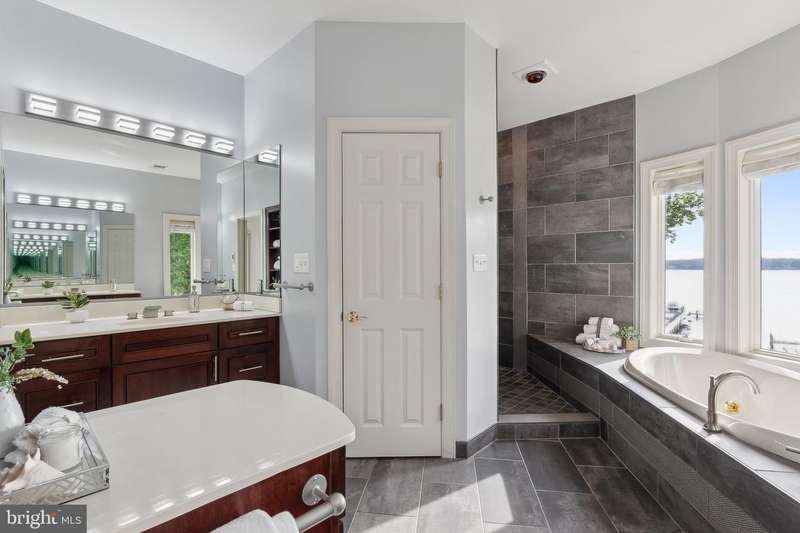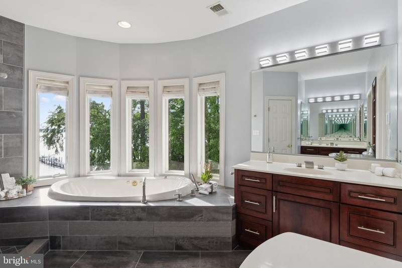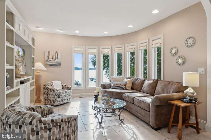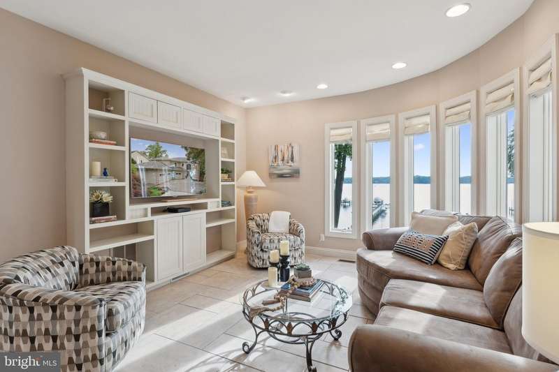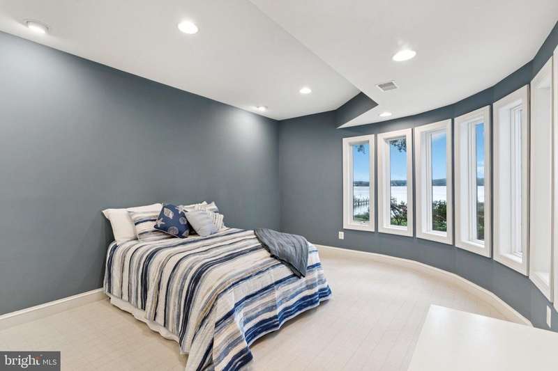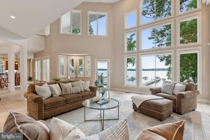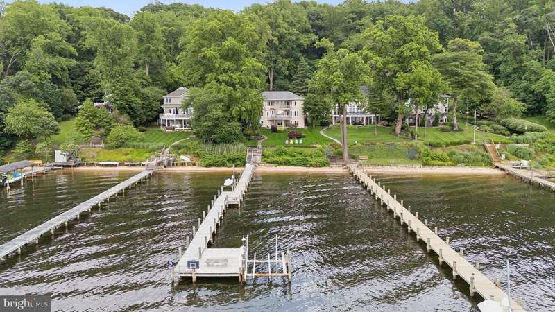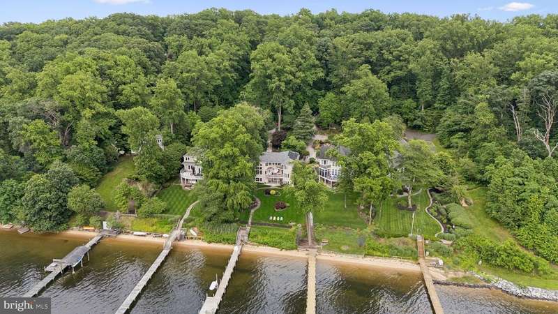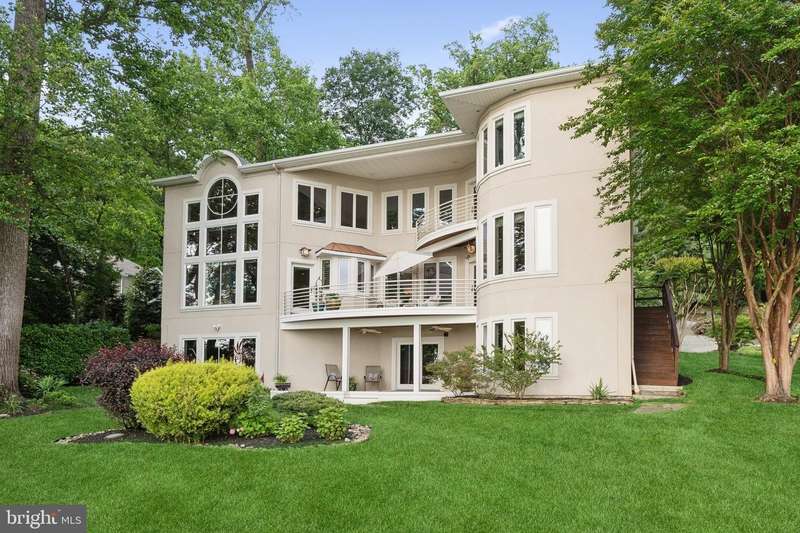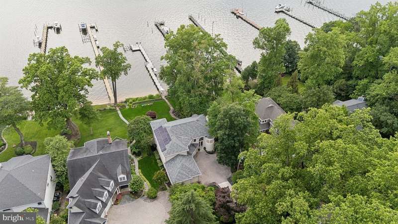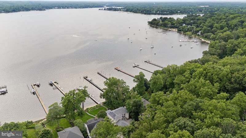 ""Sunset on the Severn"" - A gated, custom contemporary estate perched on 72 waterfront feet with a private pier, boat & jet ski lifts. A dramatic two-story great room with floating catwalk and wall of glass serves as the heart of this entertainer's dream. Just 15 minutes from downtown Annapolis, this Severna Park residence offers refined seclusion with seamless access to the heart of the Chesapeake. Designed to open upward and outward-toward light, toward water-every inch of this home invites you to embrace the surrounding beauty and live in rhythm with it. The main level blends form and function, anchored by a spacious eat-in kitchen and breakfast bar that flow effortlessly into both formal and informal living areas. A tucked-away family room with custom built-ins creates a cozy retreat, while art niches and clean architectural lines lend a sense of curated calm. Upstairs, the expansive primary suite features a private balcony with tranquil views, a custom walk-in closet, and a spa-like bath with dual vanities, a jetted tub, and a walk-in shower. A rear staircase leads to two additional bedrooms, a full bathroom, and a dedicated upstairs laundry. The walkout lower level is built for entertaining, featuring a stunning antique Victorian bar and a generous recreation room with an additional bedroom and a full bath. Just outside, a stone patio and manicured gardens offer a peaceful escape where birdsong and river breezes create a sense of timeless calm. Additional highlights include an oversized three-car garage with extensive storage, solar panels for year-round efficiency, a stone-paver motor court, a lily pad pond, and a garden path that gently winds to the private waterfront. Here, you don't just live by the water-you live in rhythm with it. Affectionately named Sunset on the Severn for its breathtaking evening views, you will absolutely love being home.