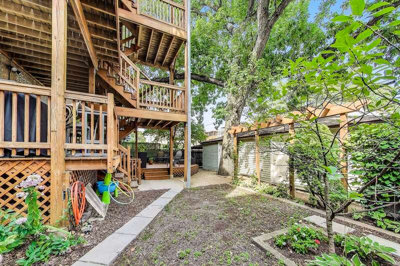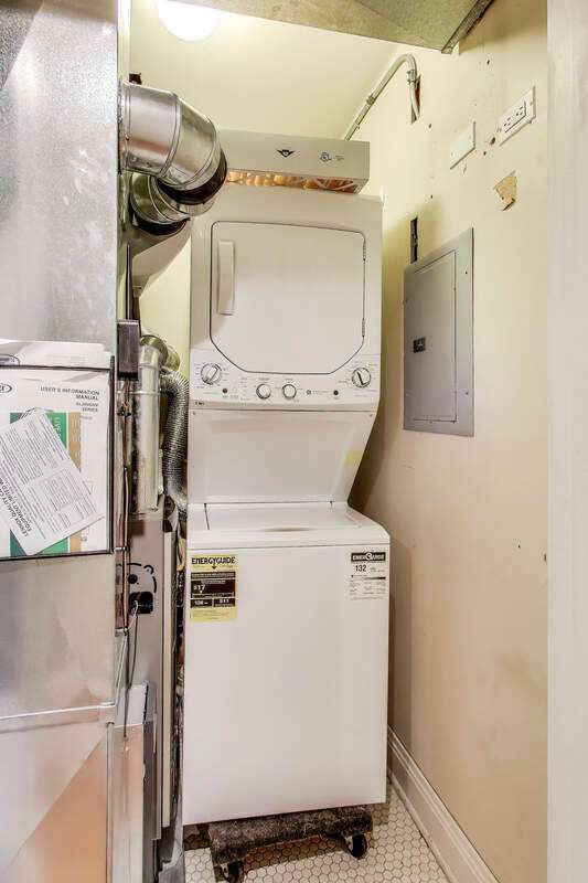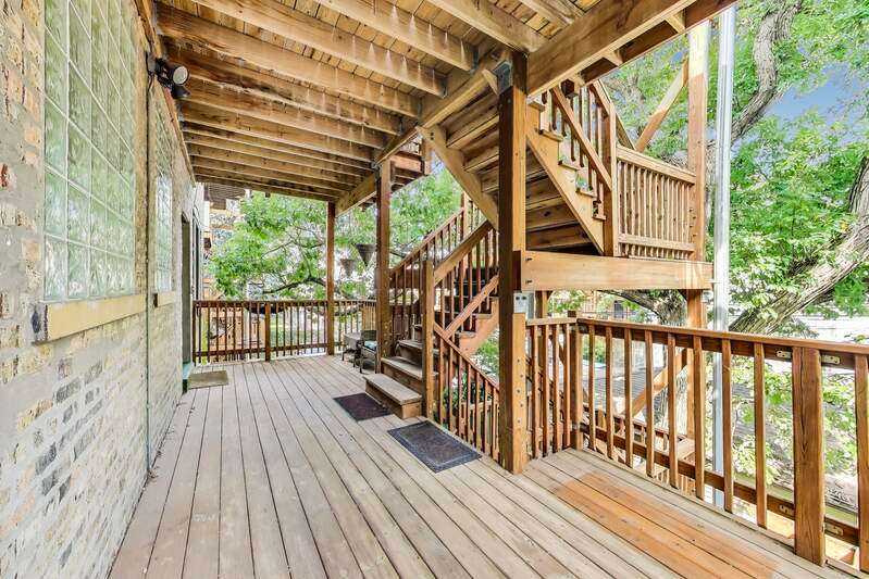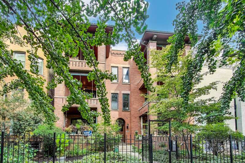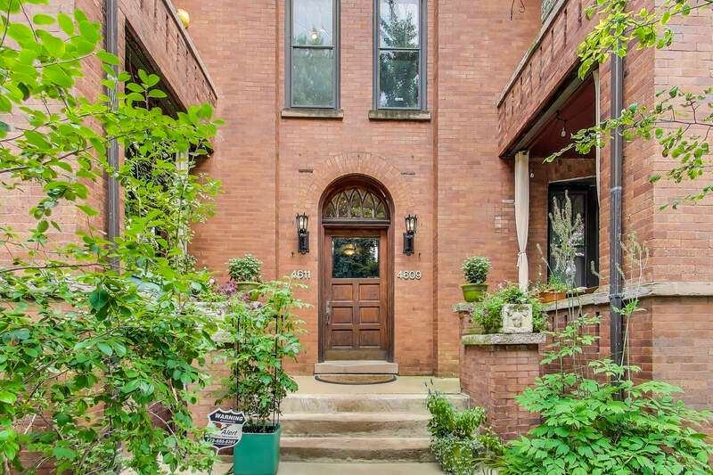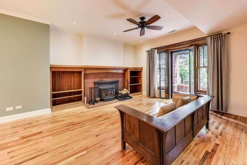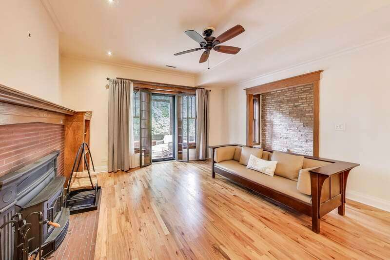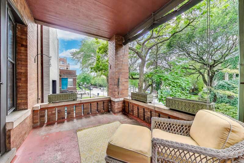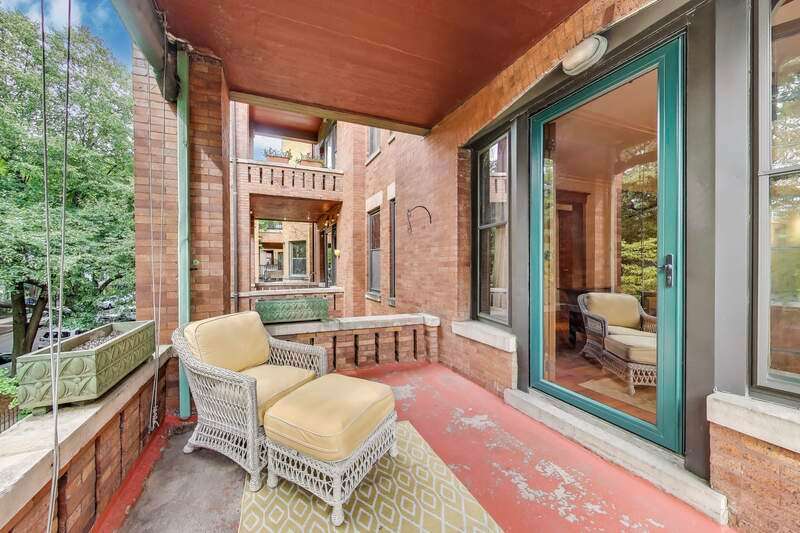 Welcome home to this amazing vintage condo on one of the most beautiful streets in Sheridan Park. An incredible marriage of vintage and modern, striking exposed brick, warm detailed millwork, glowing hardwood floors, high ceilings, beautiful muntined windows and French doors, and a spectacular wood burning fireplace add warmth and charm from the moment you walk in the door. Spacious, extensive living dining room area. A separate den/office, new (2019) kitchen with Martha Stewart cabinets, stainless appliances, loads of counter space and storage. Two large bedrooms (one queen sized, one king sized). Both with walk in closets. Huge primary bath with a lot of possibilities. Hall bath completely redone in 2024. Stackable washer/dryer new in 2021. Bucolic front balcony complete with planters, shades and water will be your refuge 3 seasons of the year. Rear deck perfect for the Sunday New York Times with your morning coffee. There is a large shared deck and yard which will amaze. One garage space included along with a huge storage room. The building is very loved and well maintained-roof patched (2024), new back decks (2017), decks stained (2022), electric service to garage (2024). Unit had a new HVAC in 2022, HWH (2017). Custom window treatments add a lovely finishing touch. Welcome home to this amazing vintage unit in an incredible location with shopping, coffee, restaurants, transportation close by and convenient. Come see the unit that will check all your boxes.